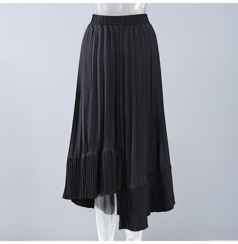 夏服ハイウェストウェストストレッチプリーツアシンメトリースカート レディース エラスティック 伸縮 夏物 ステッチ ウエスト GroundMODE45914172006 | pleglad Ground