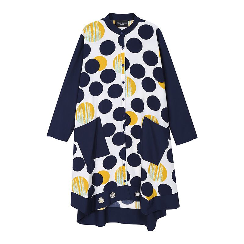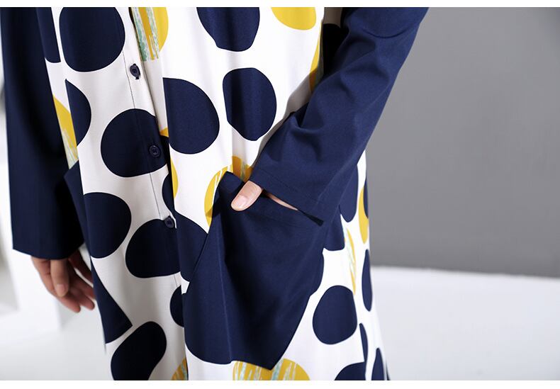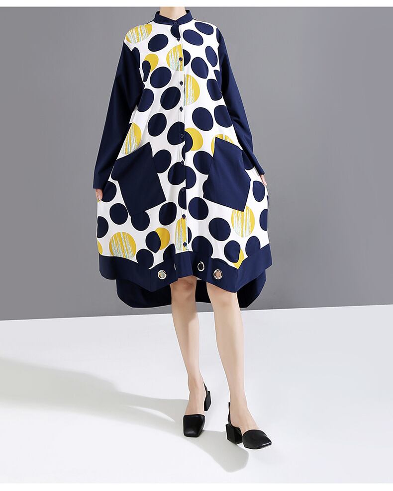 水玉ワンピーススプリング秋物カラーポケットスタンドカラー長袖スリーブ ロング 春物 オータム ヨーロピアン ステッチ GroundMODE74703842116