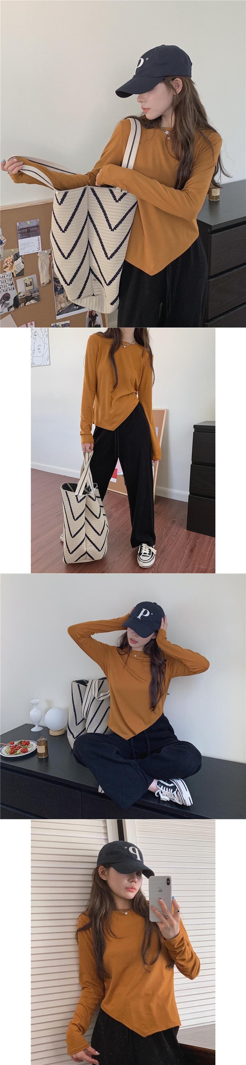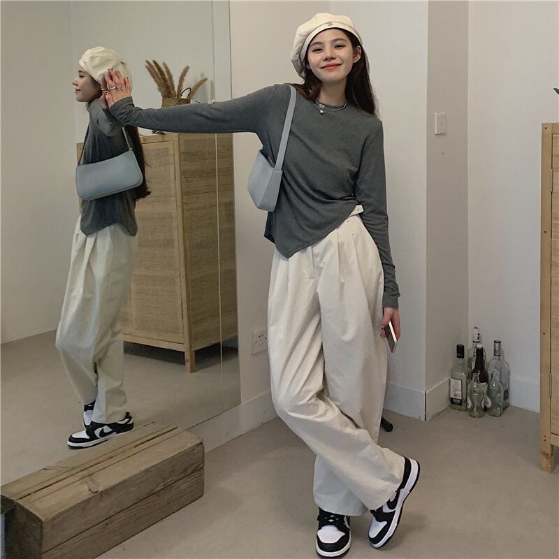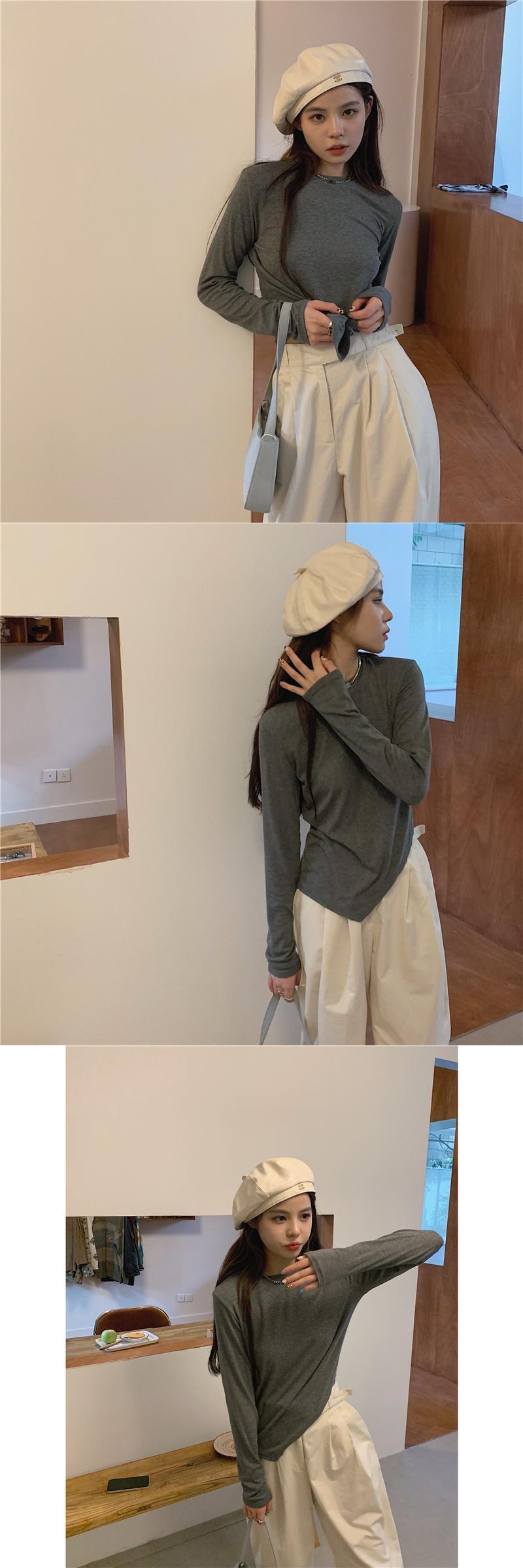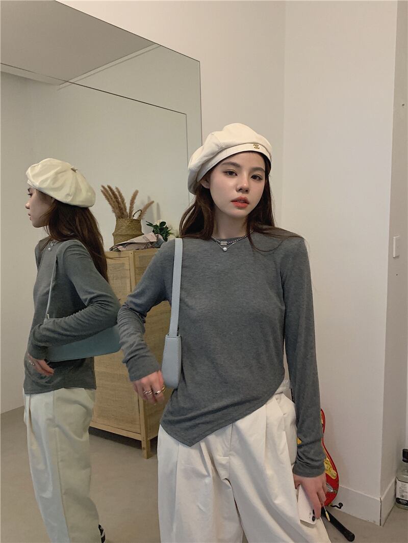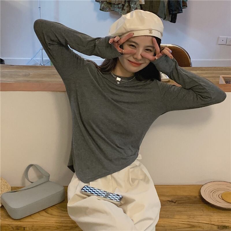 ソリッド カラーTシャツ秋物韓国ファッションラウンドネックブラウス スプリング ロング 春物 オータム Oネック ソリッドカラー スタイル 長袖 GroundMODE414657930093 | pleglad Ground