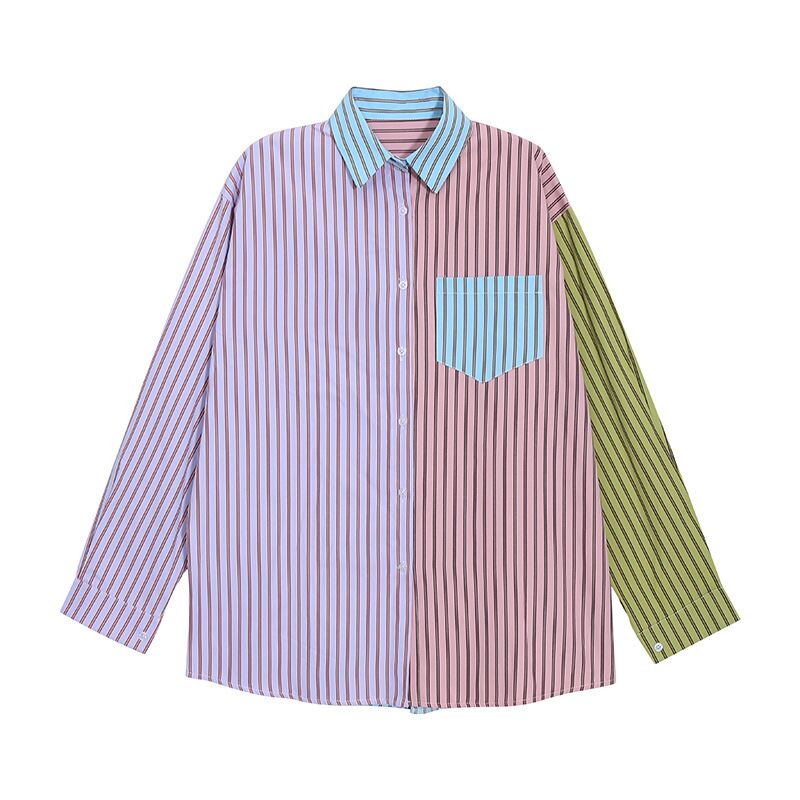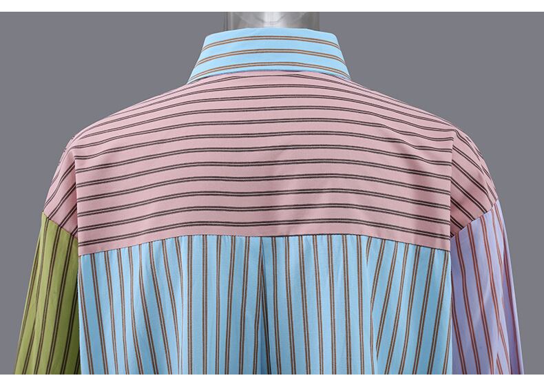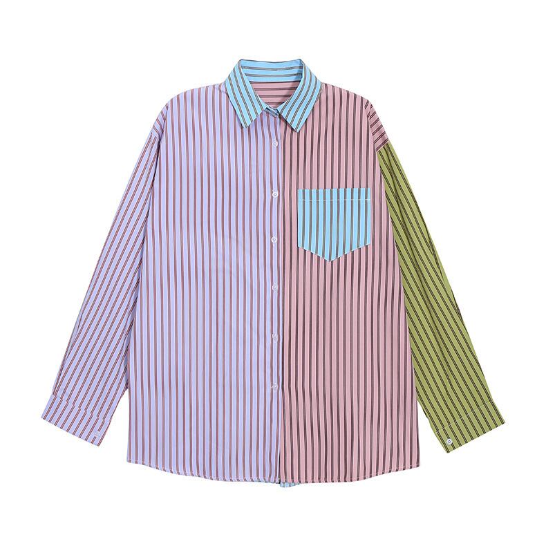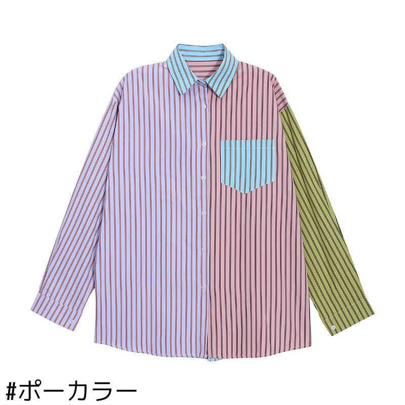 カラーストライプシャツ レディース秋物韓国ファッションルーズ オータム ヨーロピアン ステッチ GroundMODE56938764150
