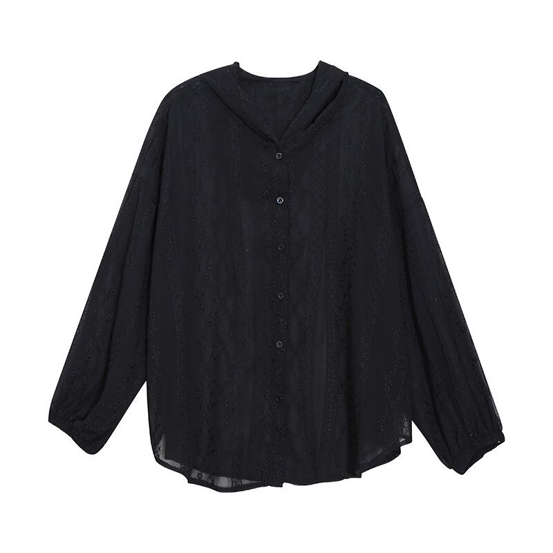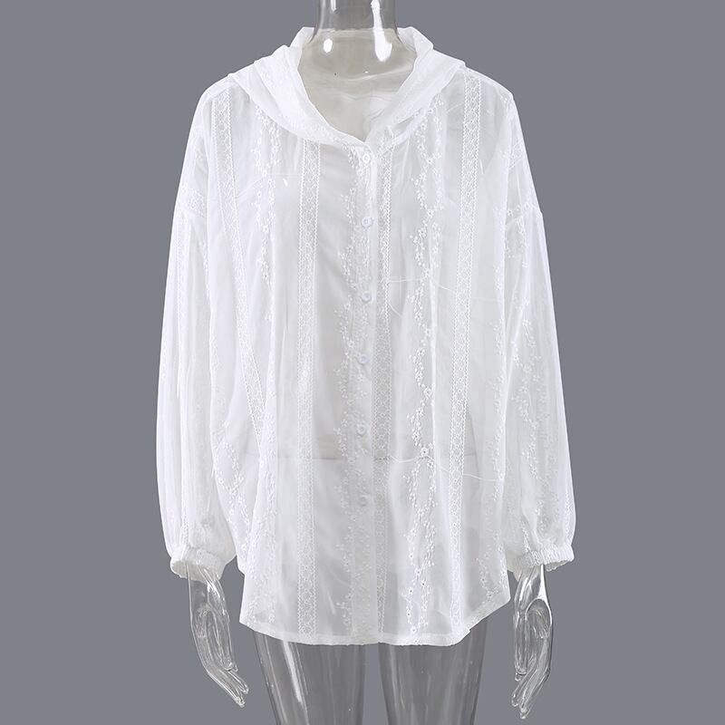 トップス 夏服レースシャツ レディースフード長袖スリーブセーター 薄手 ロング 夏物 GroundMODE37403529009