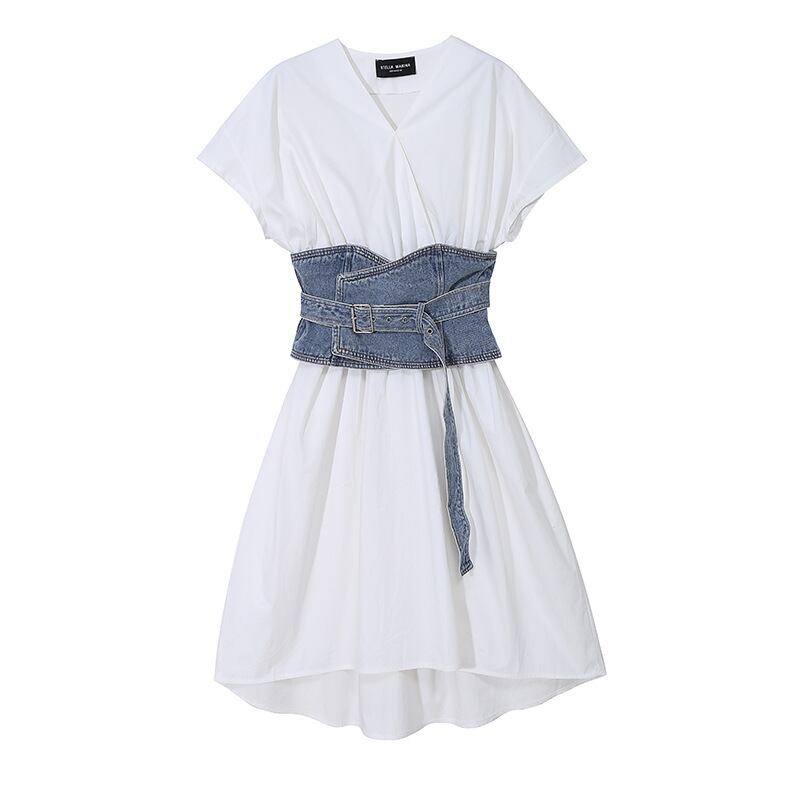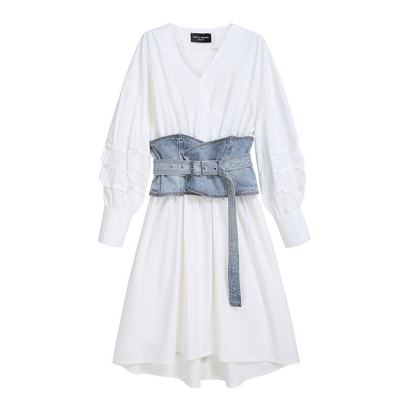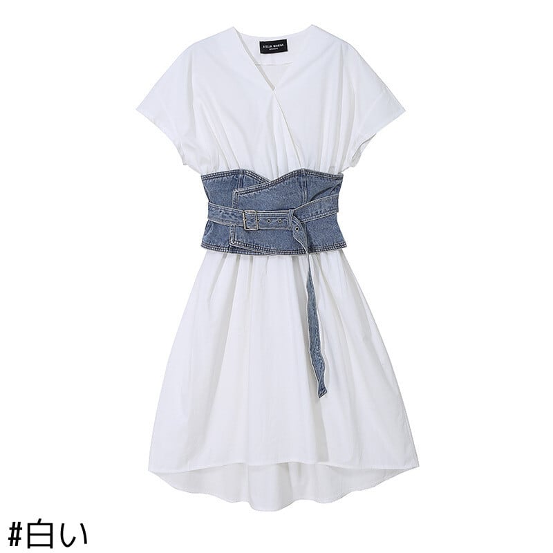 夏服スタイルウェスト韓国ファッションVネックワンピース 夏物 ヨーロピアン ウエスト GroundMODE35938727302