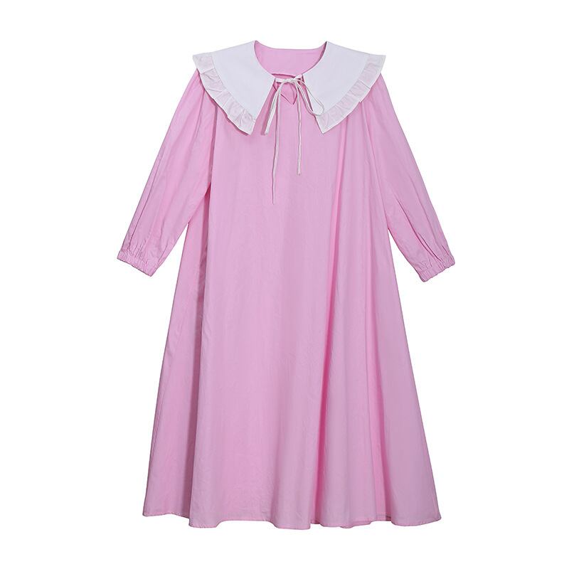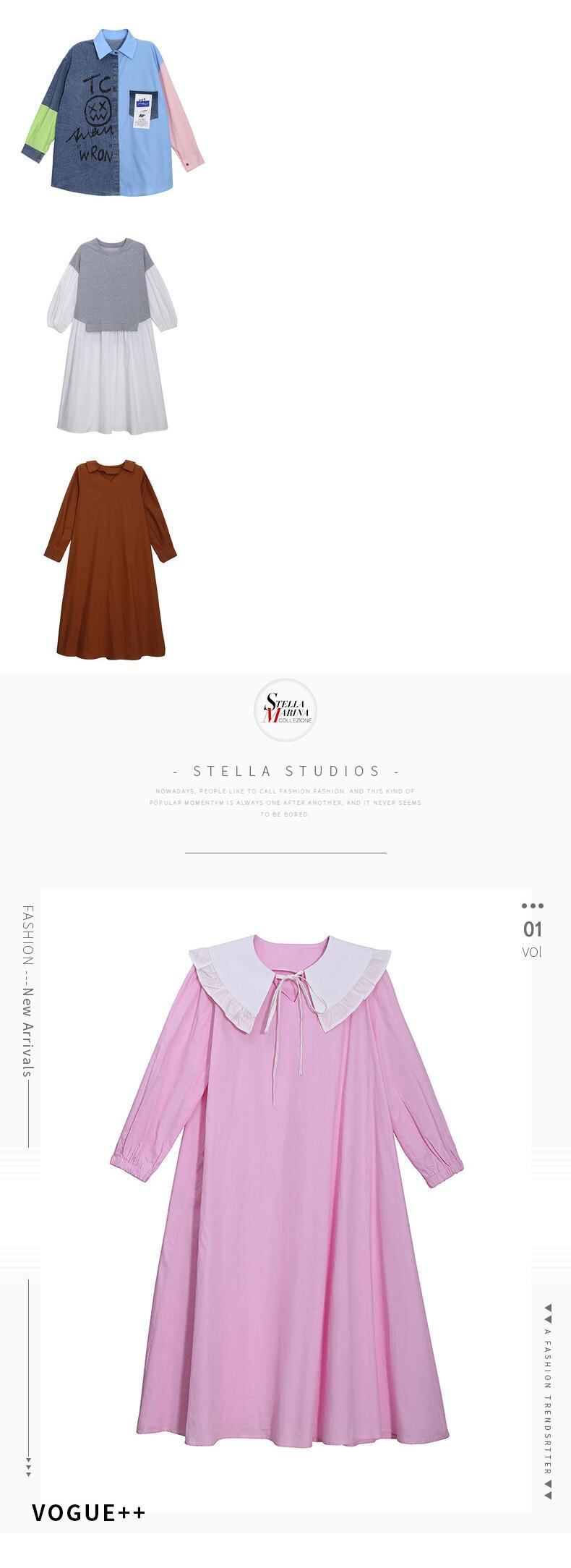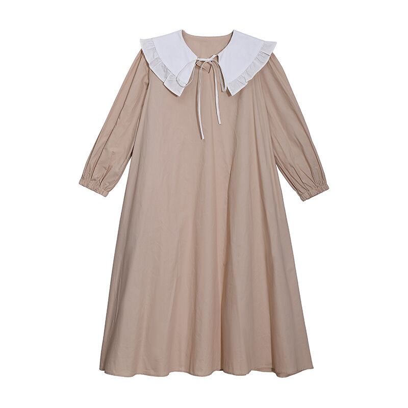 秋物スカート ネイビーカラールーズワンピース 大きめサイズ オータム ヨーロピアン GroundMODE70937058293