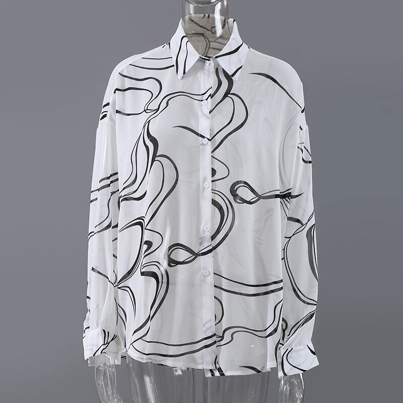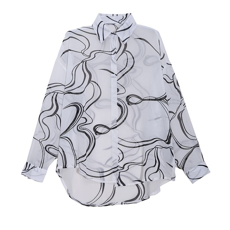 秋物スタイルカジュアルジャケット シャツ 薄手プリントレディース ロング 原宿 オータム 長袖 GroundMODE18877033343