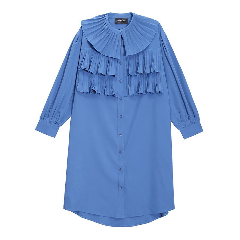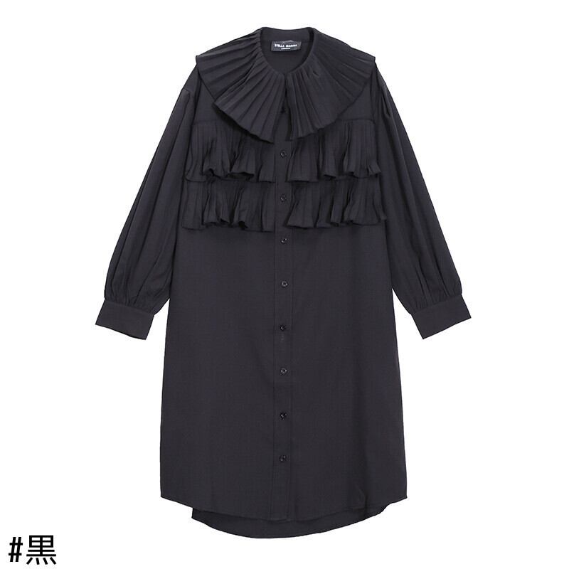 韓国ファッション秋物スリムスカート プリーツカラーシャツ ワンピース ロング オータム スタイル 長袖 GroundMODE95484063219