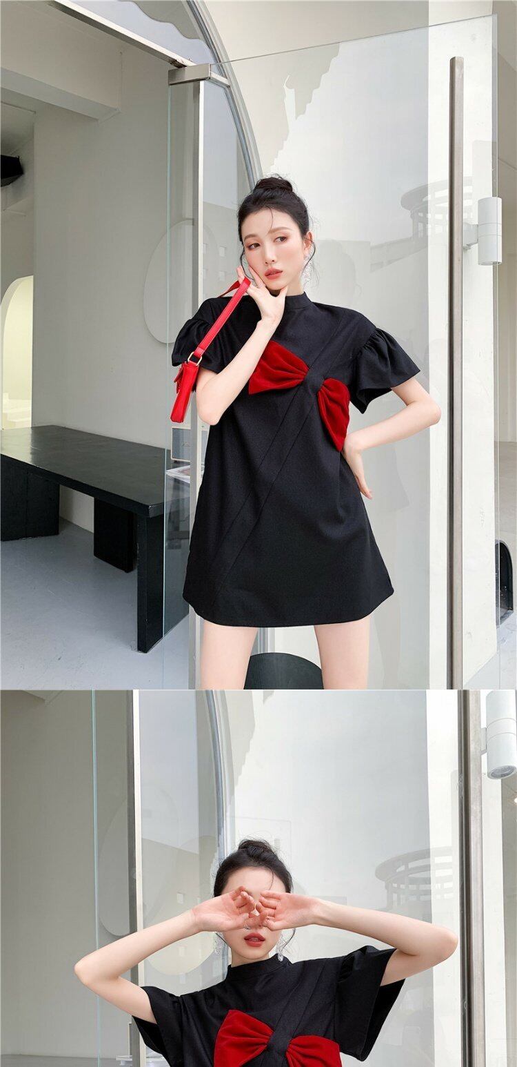 ミニ ワンピースワンピース夏服韓国ファッションルーズ薄手ブラックスカート NEW リボン 大人ガーリー スウィート キュート カジュアル 夏物 スタイル GroundMODE461309092936 | pleglad Ground