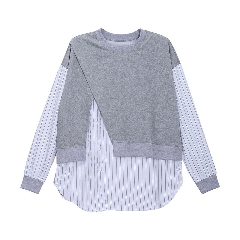 秋物ルーズ韓国ファッション薄手ラウンドネックプルオーバー セーター ゆったりシャツ レディース ロング オータム Oネック スタイル 長袖 GroundMODE51661070719