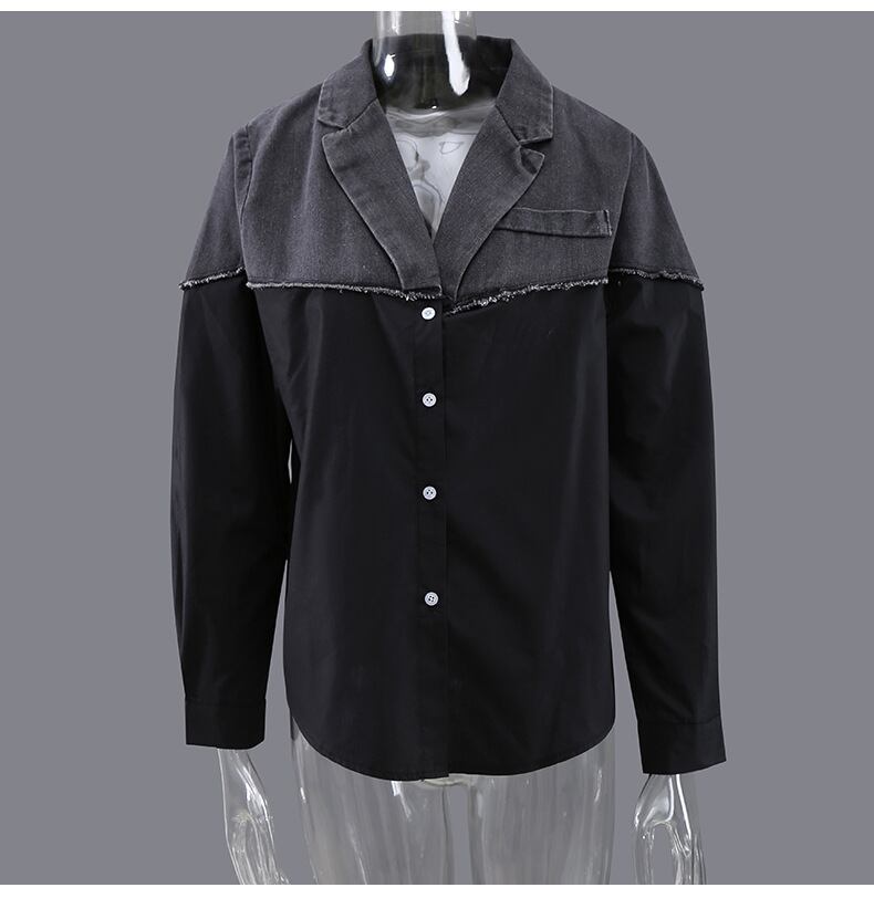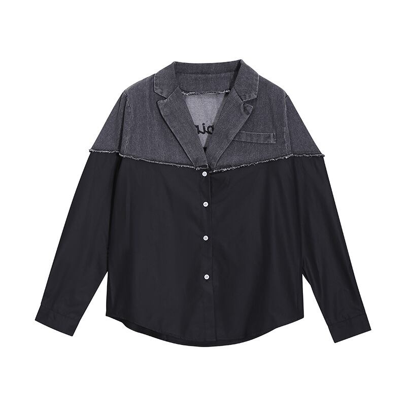 トップス 韓国ファッションスタイルカラーシャツ ルーズレディース ロング ステッチ 長袖 GroundMODE39143605696