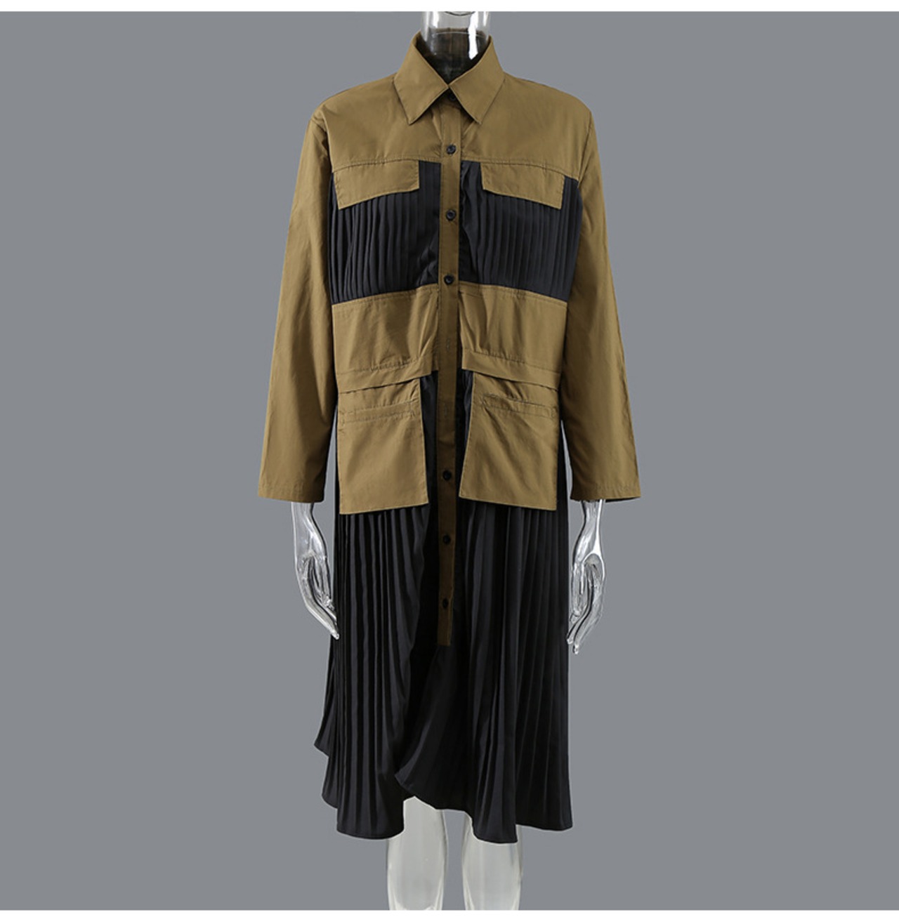 秋物ワンピース薄手プリーツシャツ スカート 大きめサイズ オータム ステッチ GroundMODE43904412913