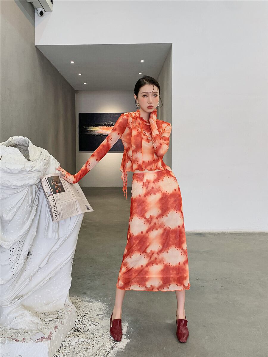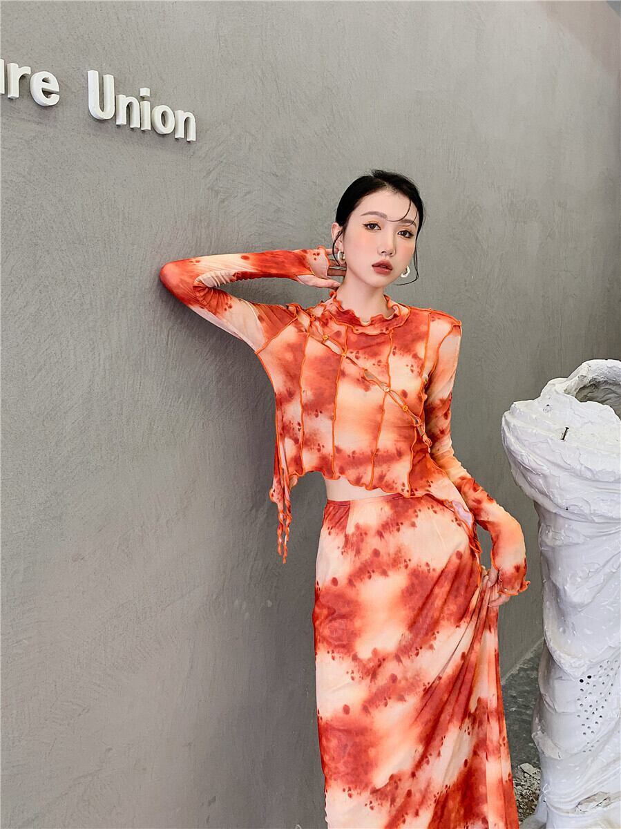 色:グラフィックトップ,グラフィック伸縮性ウエストスカート