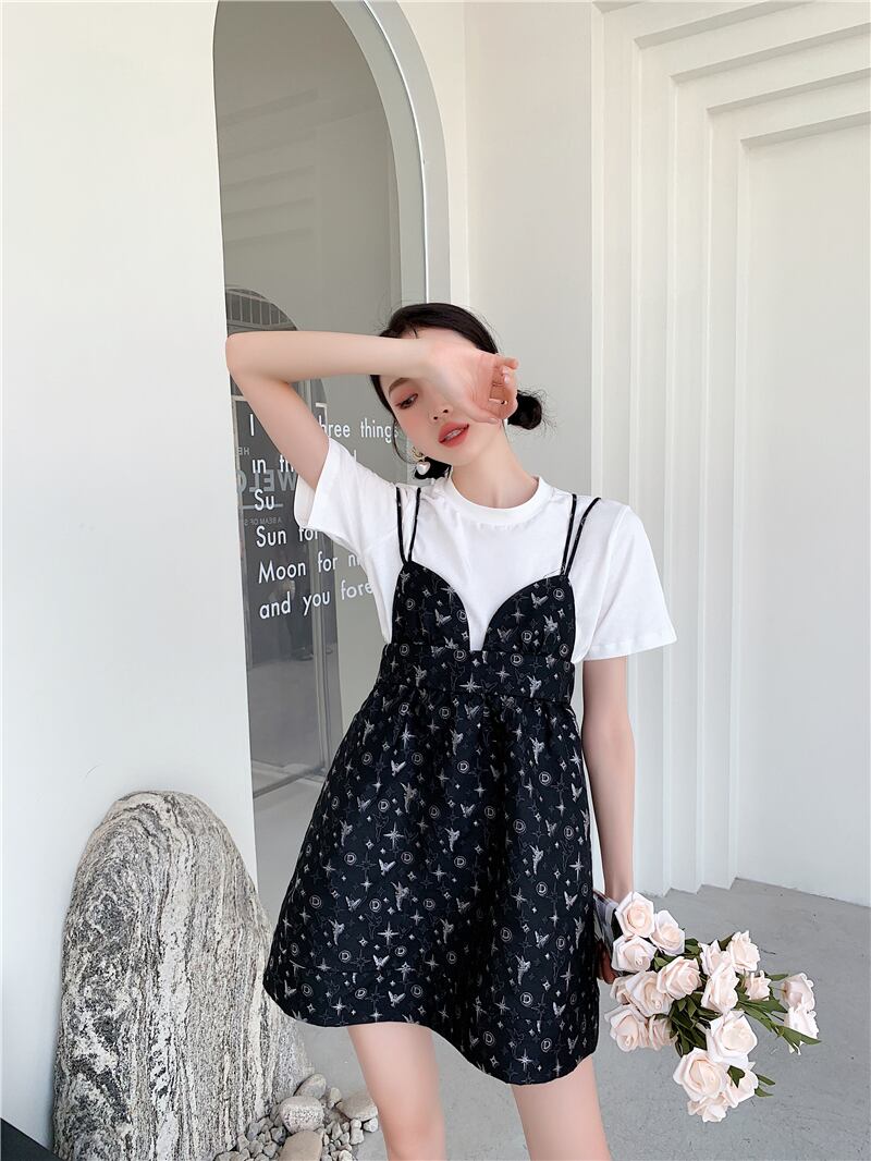 ワンピースレディース夏服ジャカードAラインルーズハイウェストウェスト 大人ガーリー スウィート キュート カジュアル 夏物 ウエスト ミドル丈 GroundMODE265518533689 | pleglad Ground