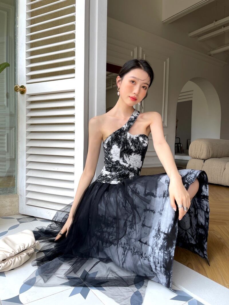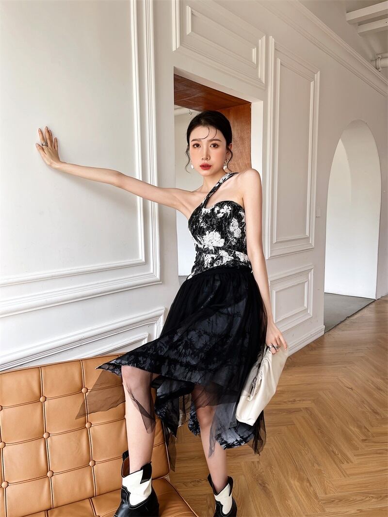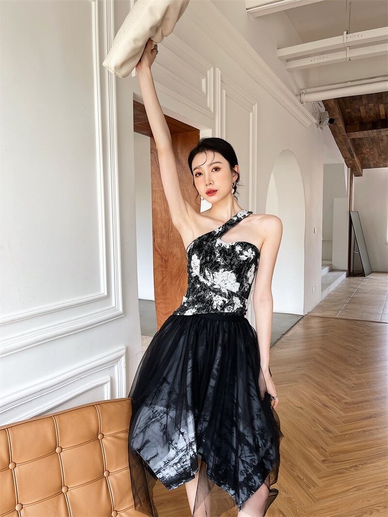 色:プリントカラースリング,黒スカート
