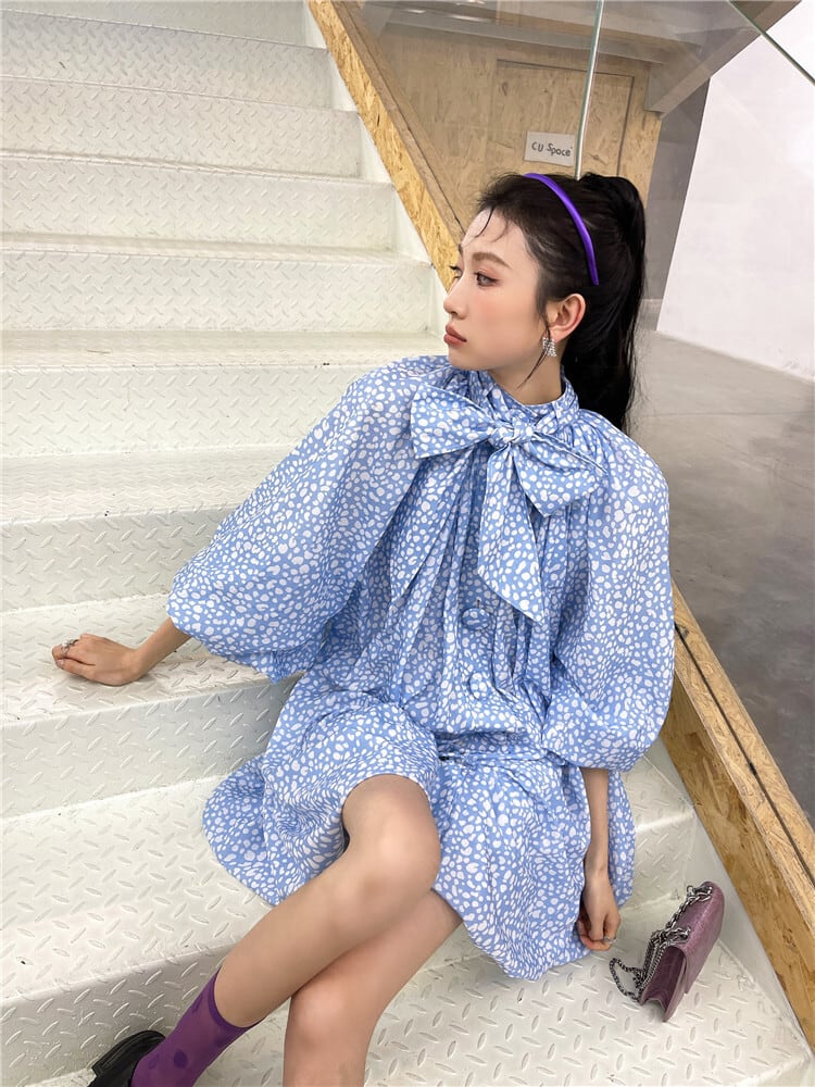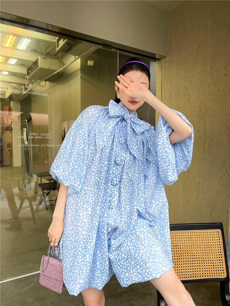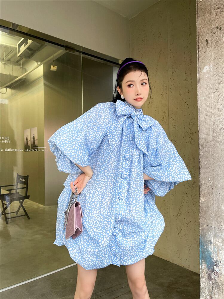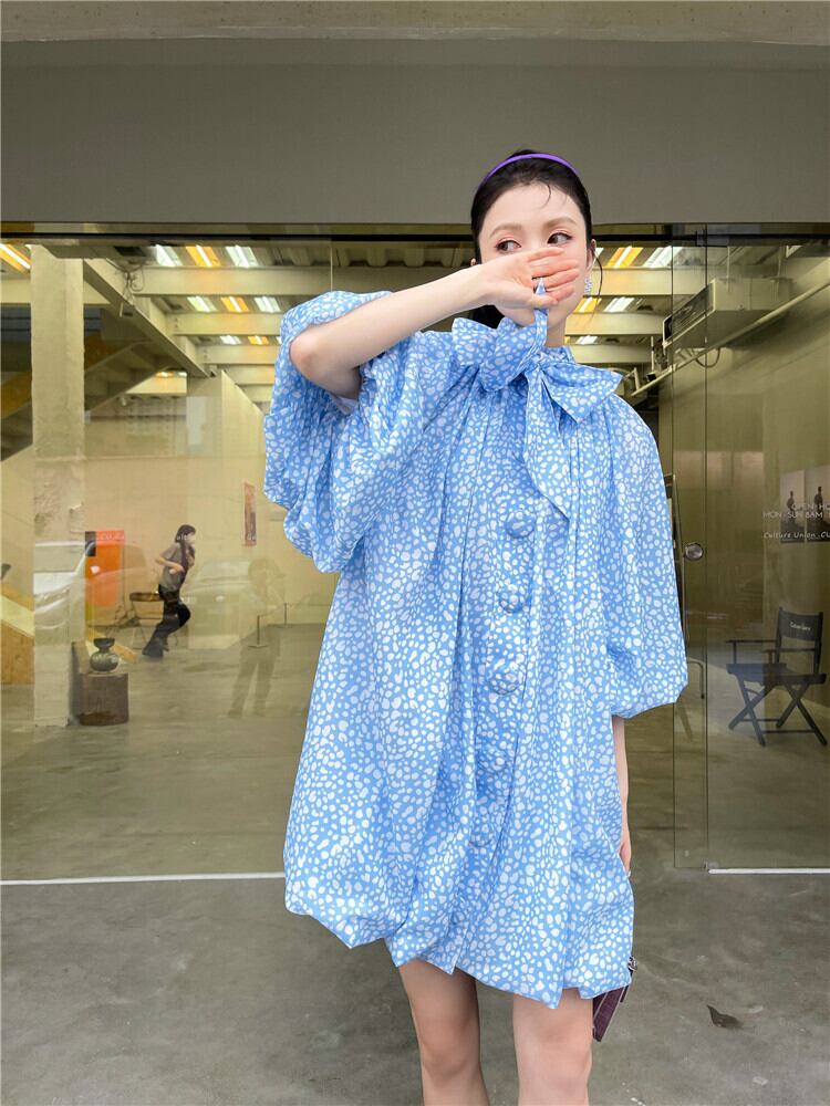 ブルースリーブワンピースレディーススプリング夏服ルーズスカート リボン 大人ガーリー スウィート キュート カジュアル 春物 夏物 GroundMODE257761661369 | pleglad Ground