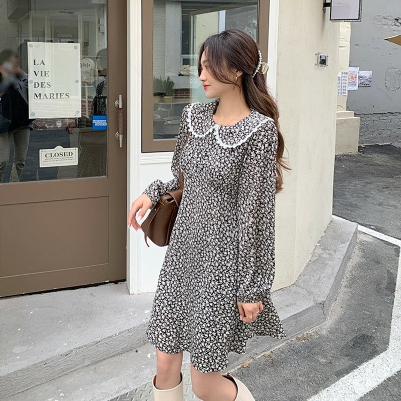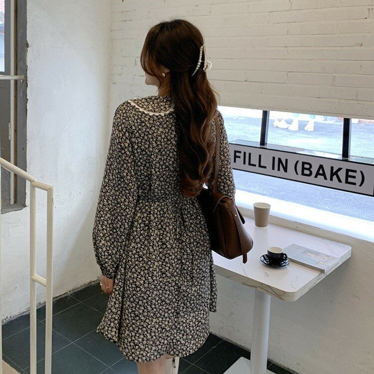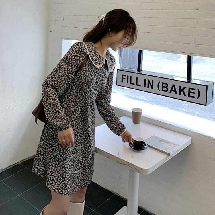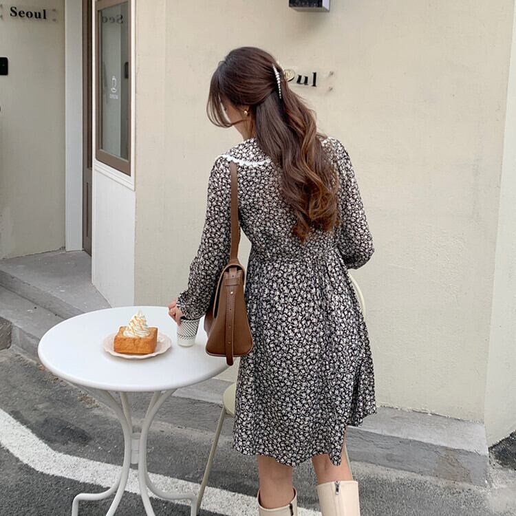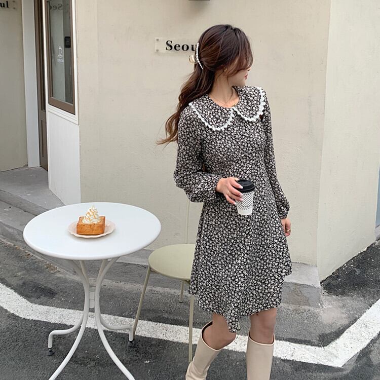 Flowerデザイン スプリング秋物ウェストフローラルワンピースレディーススタンダードレースカラープリント薄手スカート レトロ 春物 オータム 花柄 フラワーデザイン ウエスト GroundMODE466647797415 | pleglad Ground