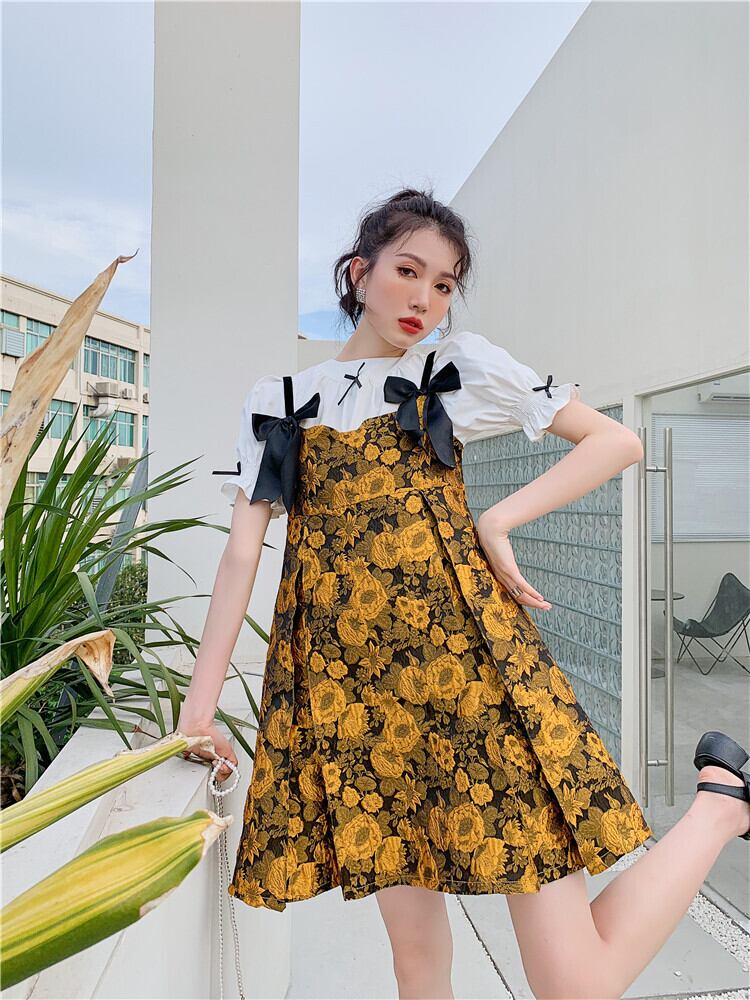 色:ホワイトトップ,ゴールデンサスペンダースカート