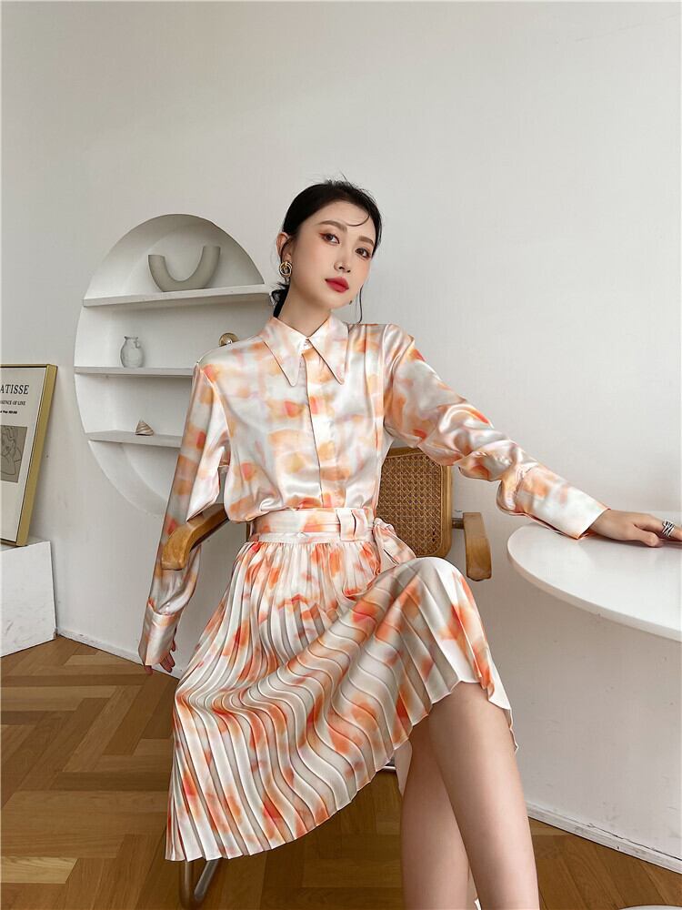 色:カラーシャツ,パターンスカート