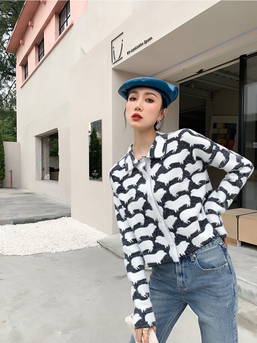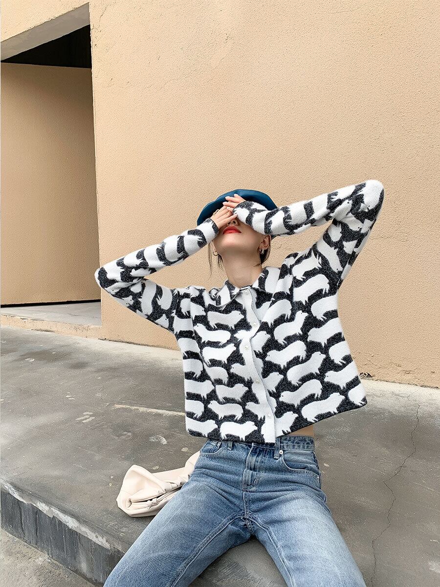 パターンセーター カーディガンウィンターニットショートジャケット 秋物 レッド 大人ガーリー スウィート キュート カジュアル オータム 冬物 GroundMODE28351476900 | pleglad Ground