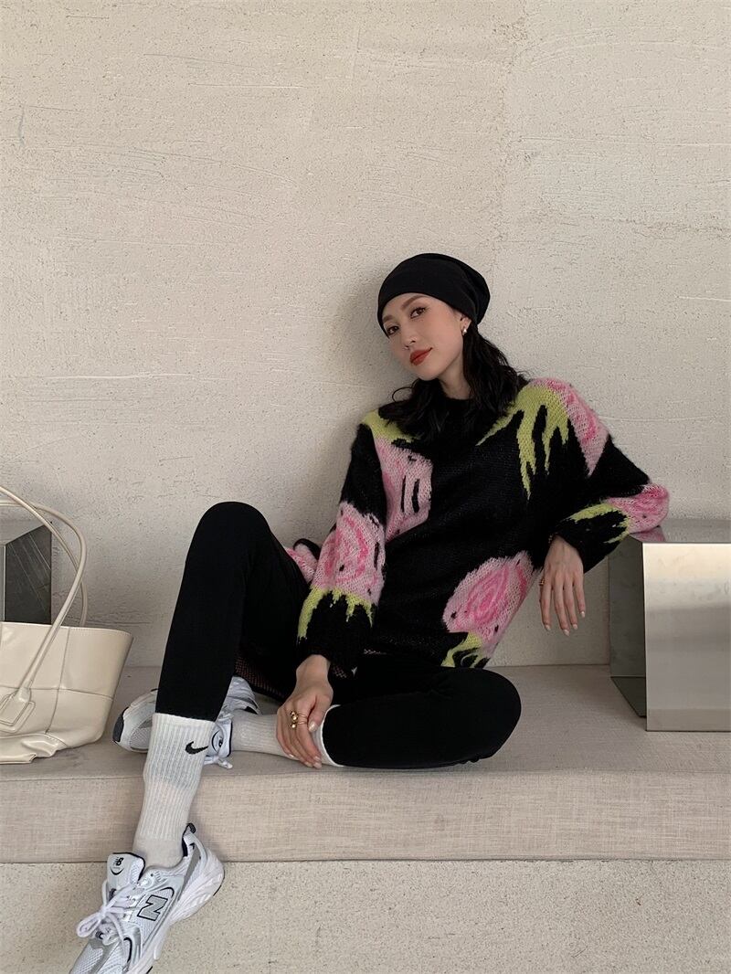 色:黒にピンクの花[スポット]