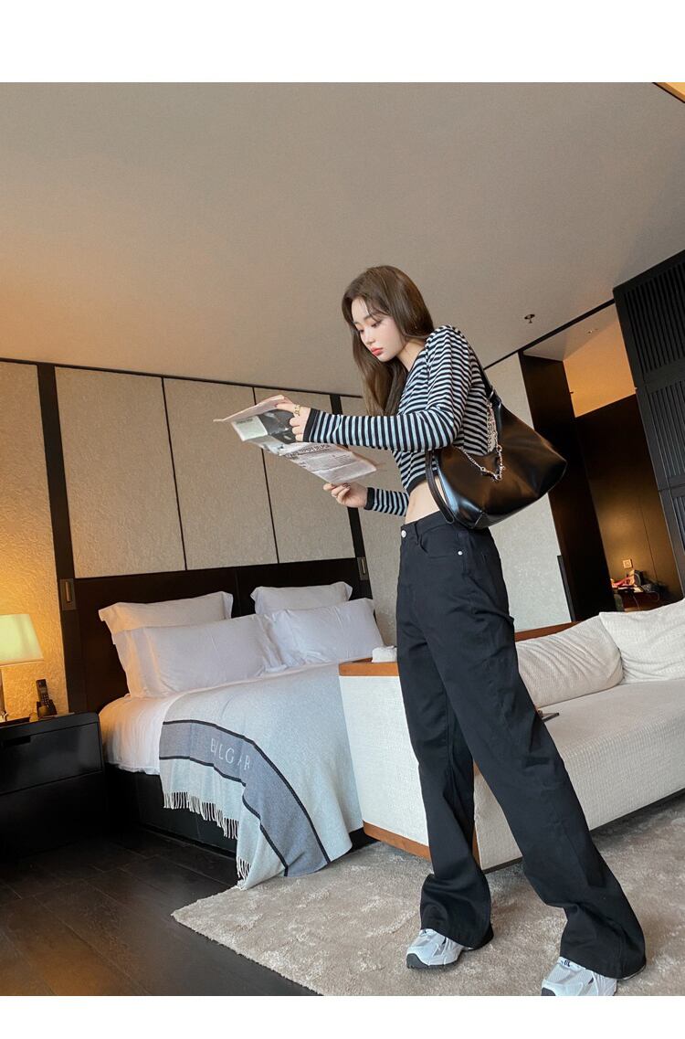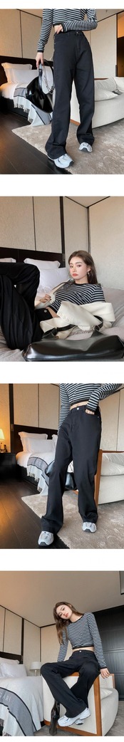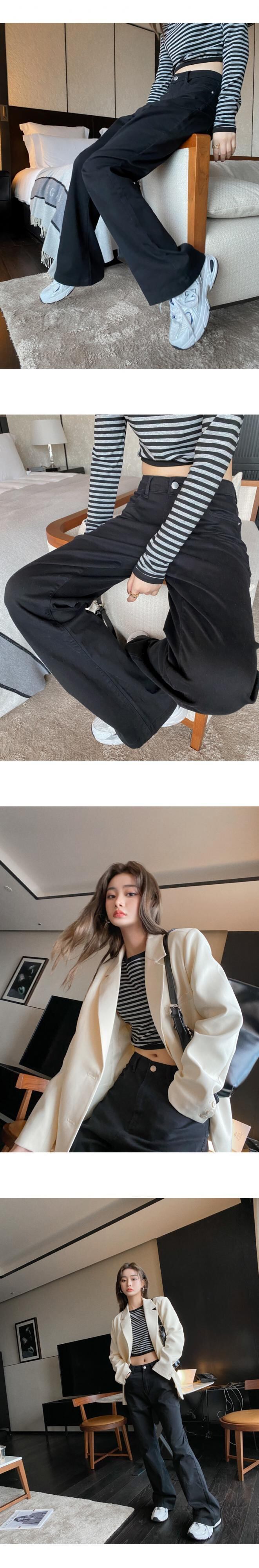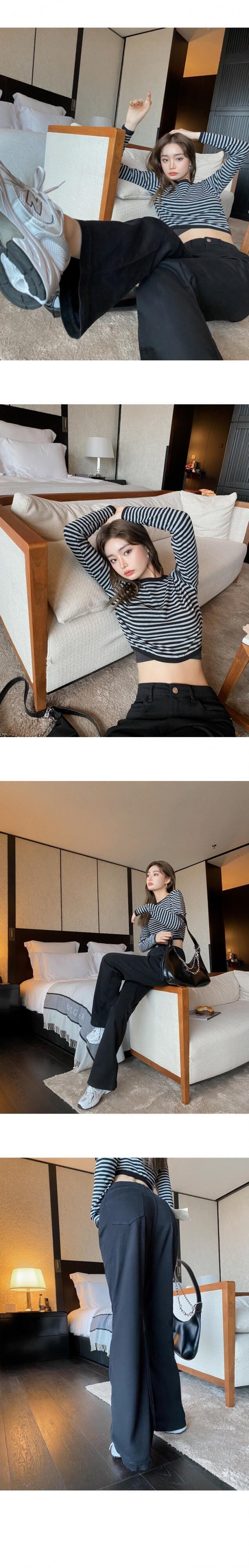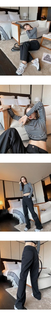 色:縞模様のトップスポット,ブラックデニムストレートブーティーパンツ入荷