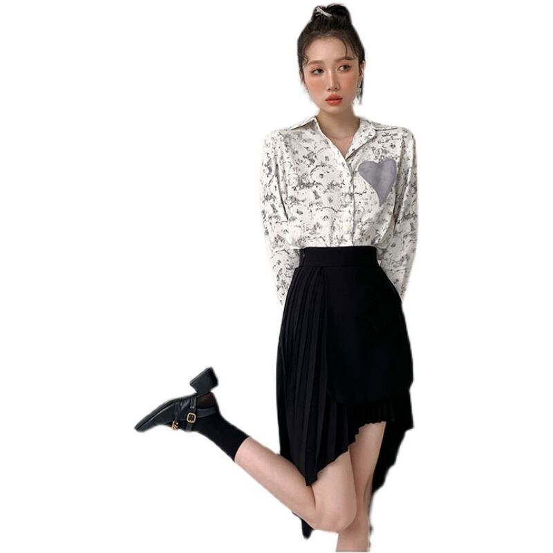 色:ライトアプリコットグレーシャツ,不規則なスカート