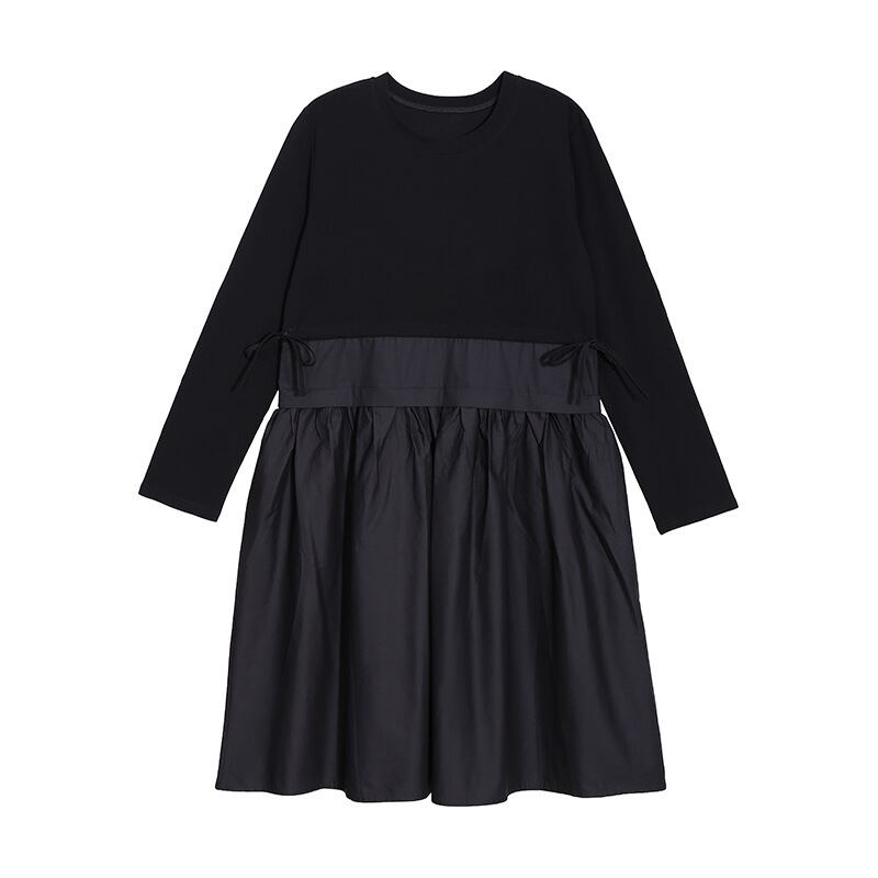 ダブルギャザーワンピース秋物ウィンタースタイルスカート ルーズ ロング 大きめサイズ オータム 冬物 ステッチ 長袖 GroundMODE42847551771