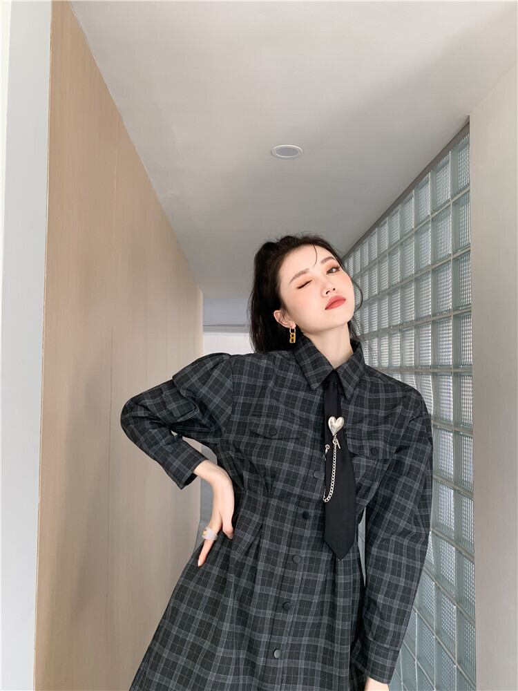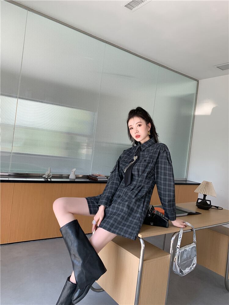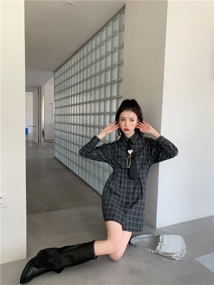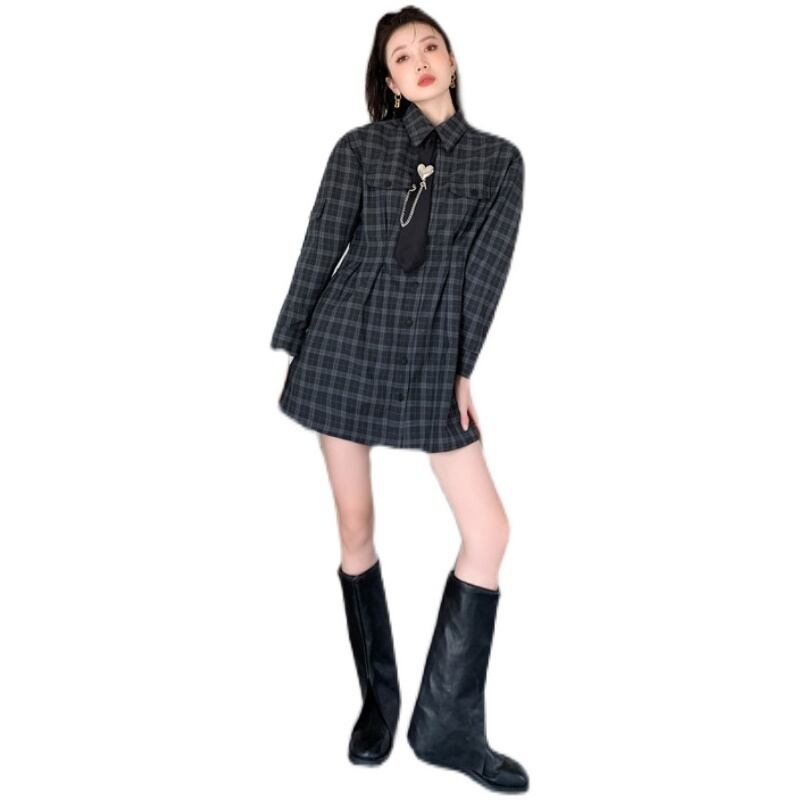 色:ダークグレーのシャツドレス,ネクタイが大好き