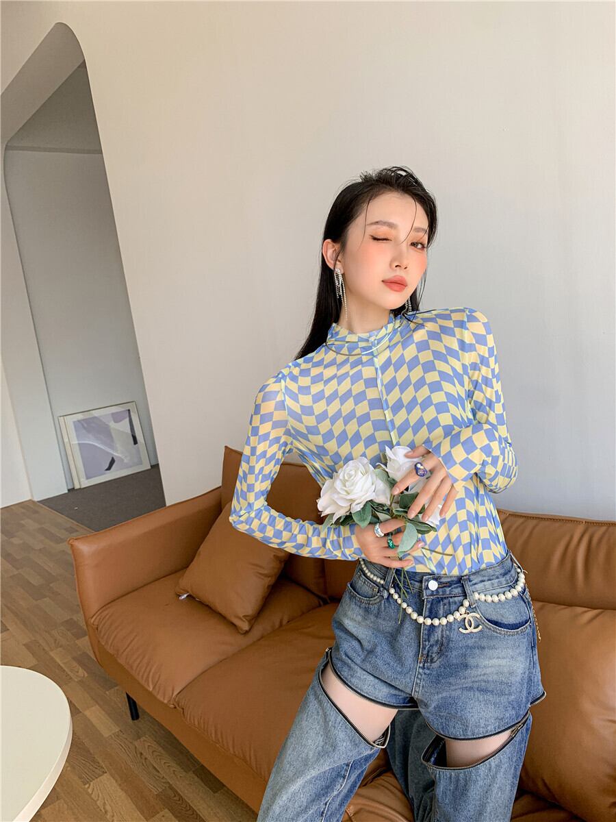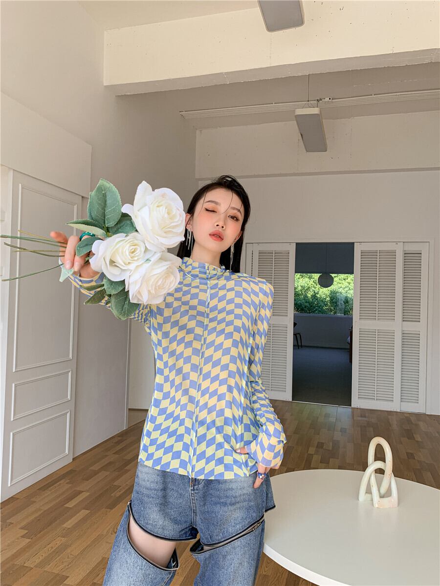 色:黄色と青のチェック柄