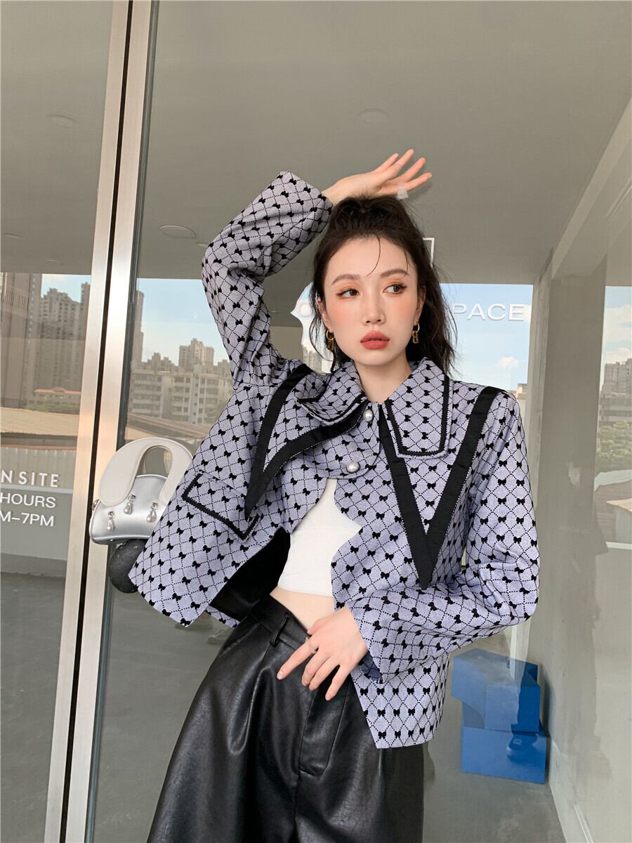 秋物スタンダードリボンショートジャケット アシンメトリートップス レトロ 大人ガーリー スウィート キュート カジュアル オータム GroundMODE28950165170 | pleglad Ground