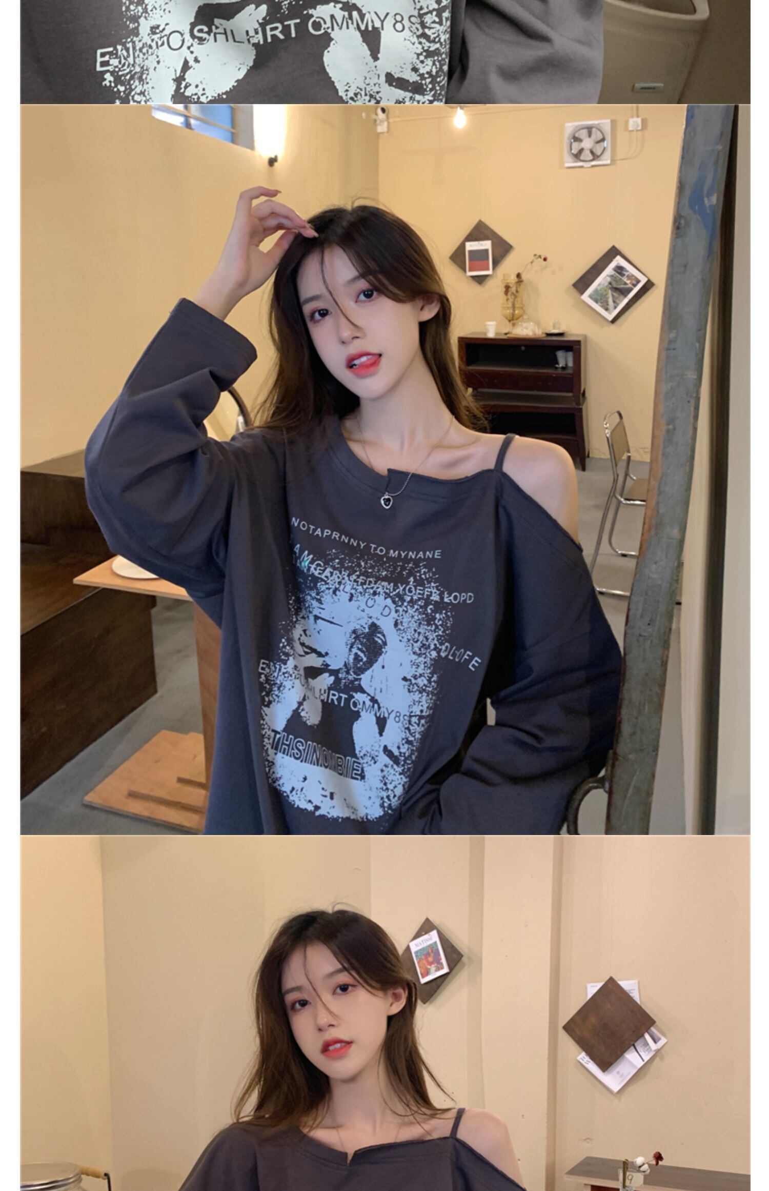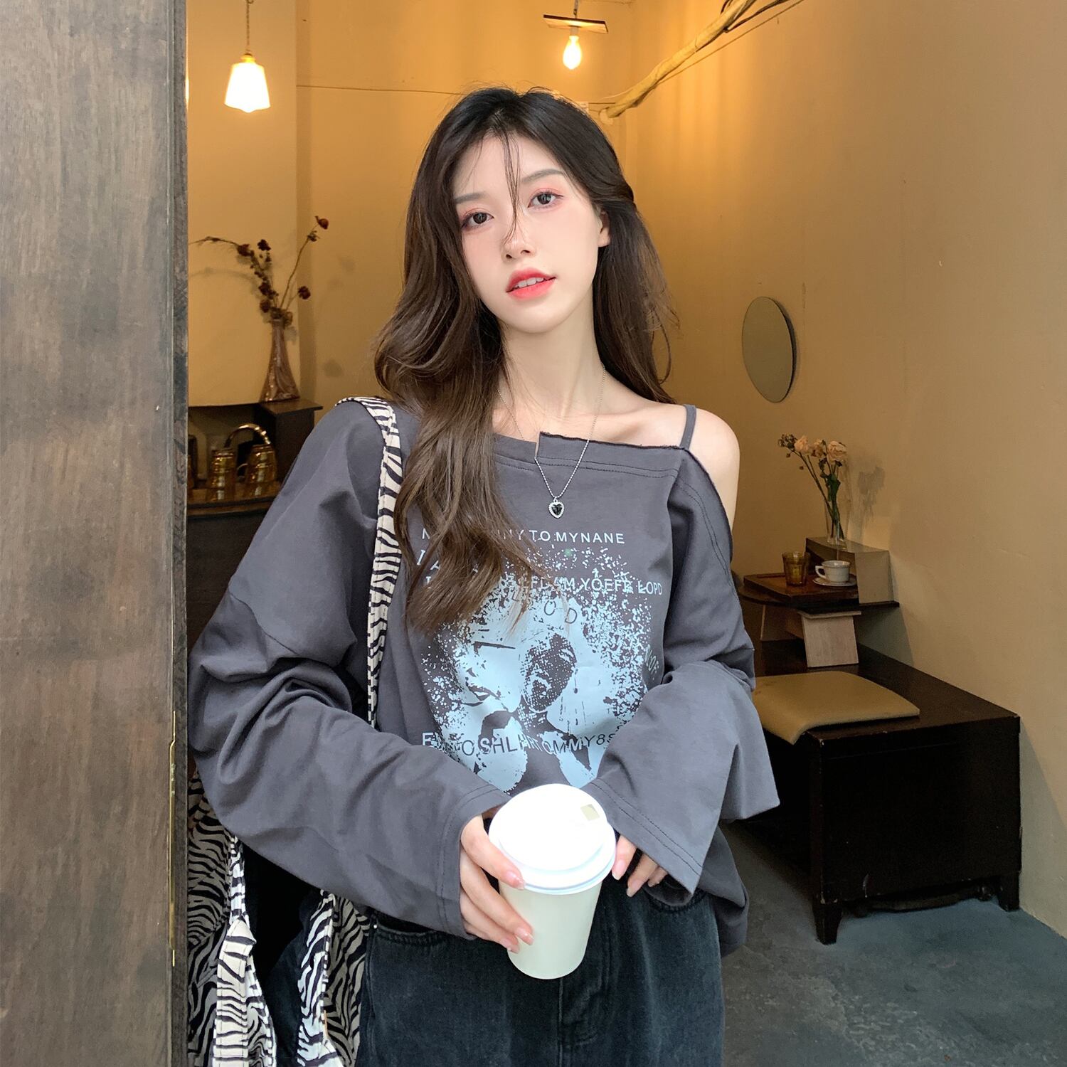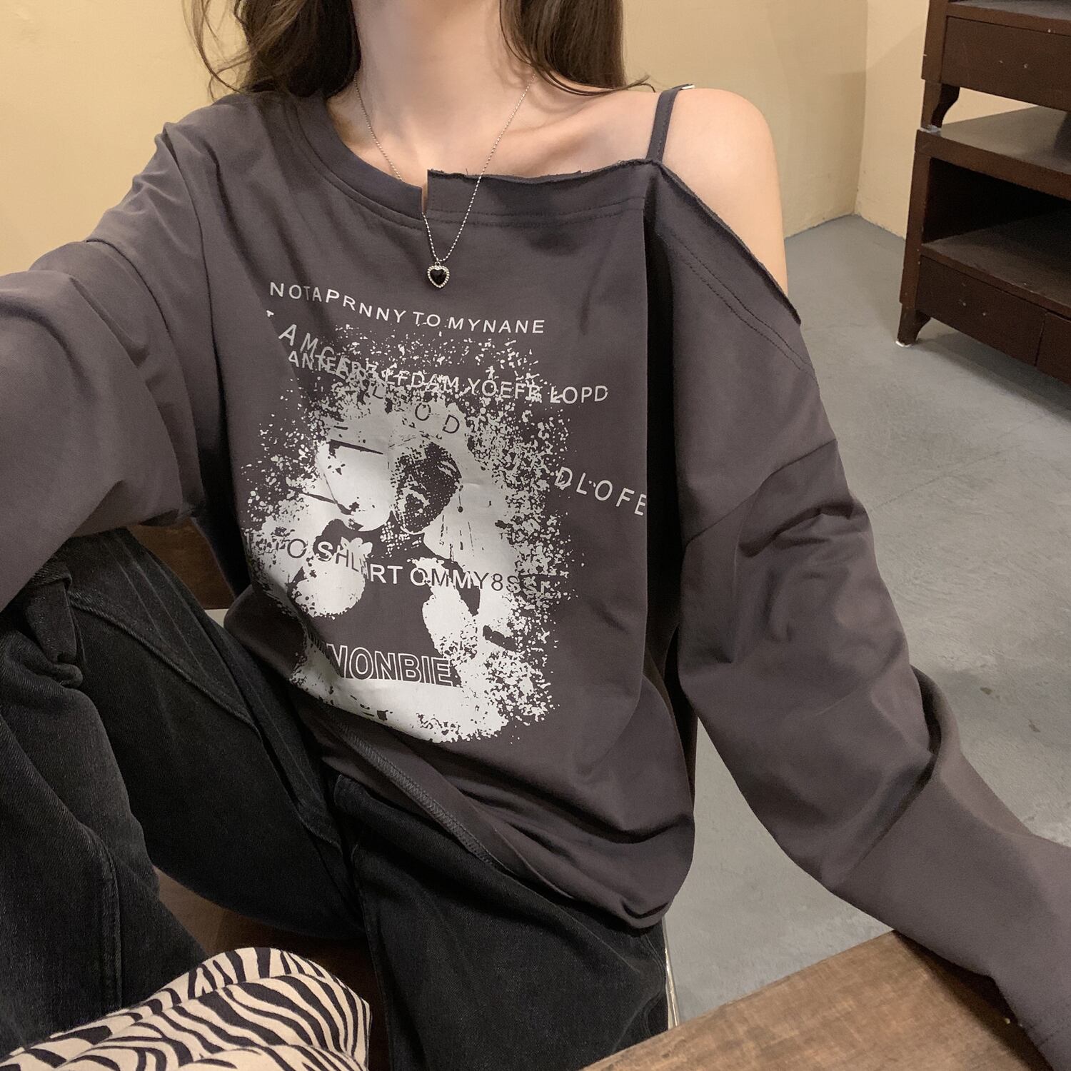 ストラップレスプリントTシャツシャツ レディーススプリング秋物ルーズスタンダードスタイルNEW ロング レトロ ストリート 春物 オータム 長袖 GroundMODE418354490639 | pleglad Ground