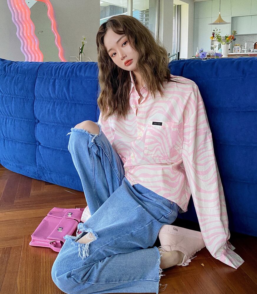 シャツ スタンダードスタイルルーズカラートップス レディーススプリング秋物 ロング ピンク レトロ 春物 オータム スクウェア 長袖 GroundMODE438914133049 | pleglad Ground