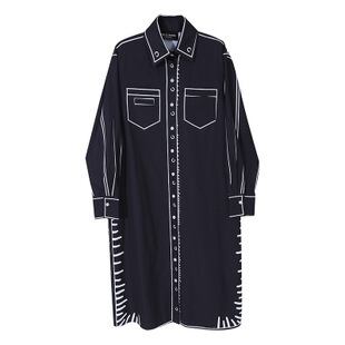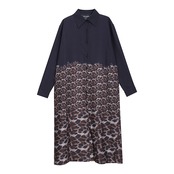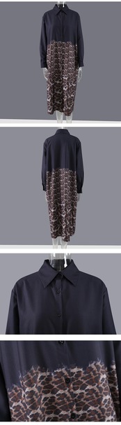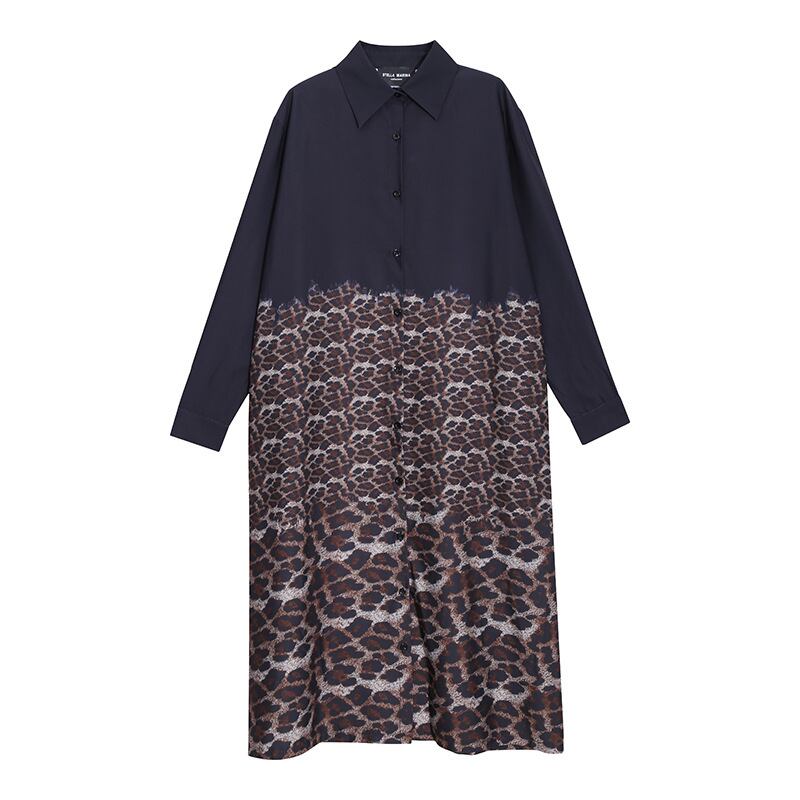 秋物ワンピースレオパードプリント柄シャツ ルーズスカート ロング オータム 長袖 ミドル丈 GroundMODE69180674850