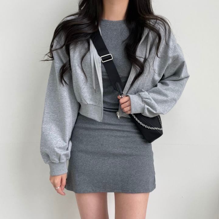 ブラックカジュアルショートセーター カーディガンジャケット レディーススプリング秋物スリムゆったりワンピース 春物 オータム GroundMODE495863873974 | pleglad Ground