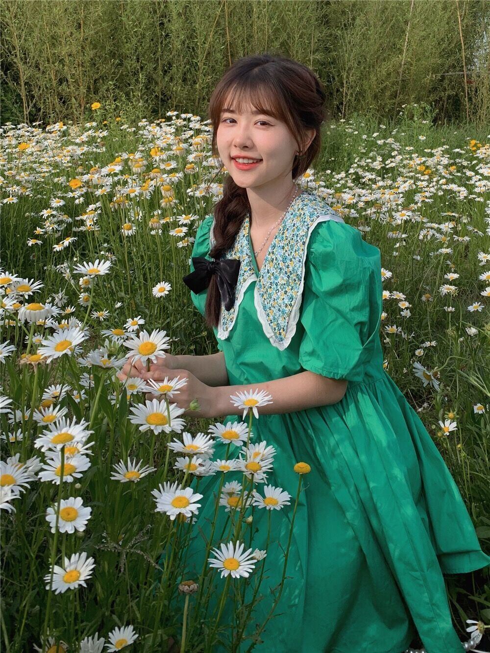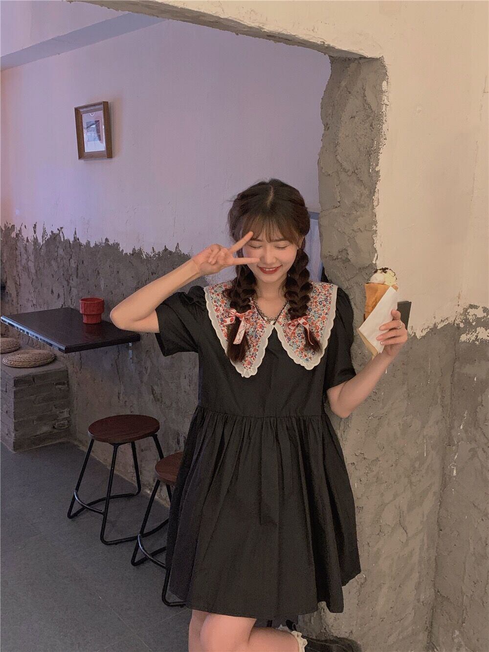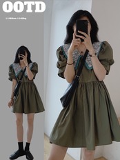 夏服カラーウェストルーズ韓国ファッションワンピース 大人ガーリー スウィート キュート カジュアル 夏物 ピュア パフスリーブ ウエスト GroundMODE472113652836 | pleglad Ground