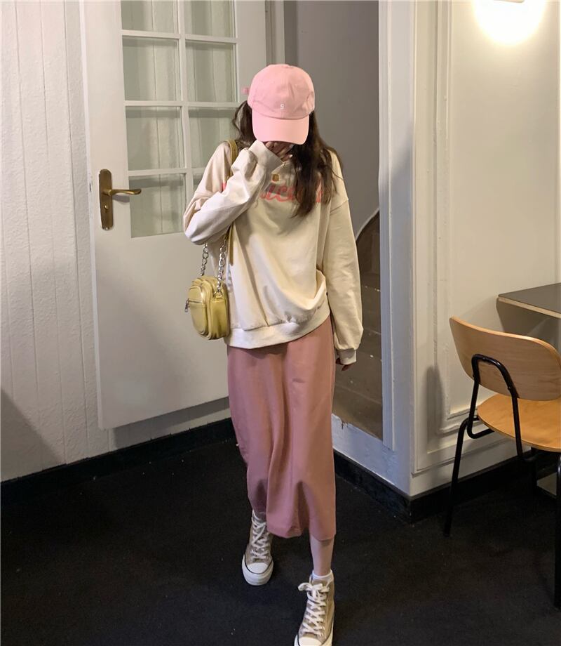 色:アプリコットセータースポット,在庫のピンクのスカート