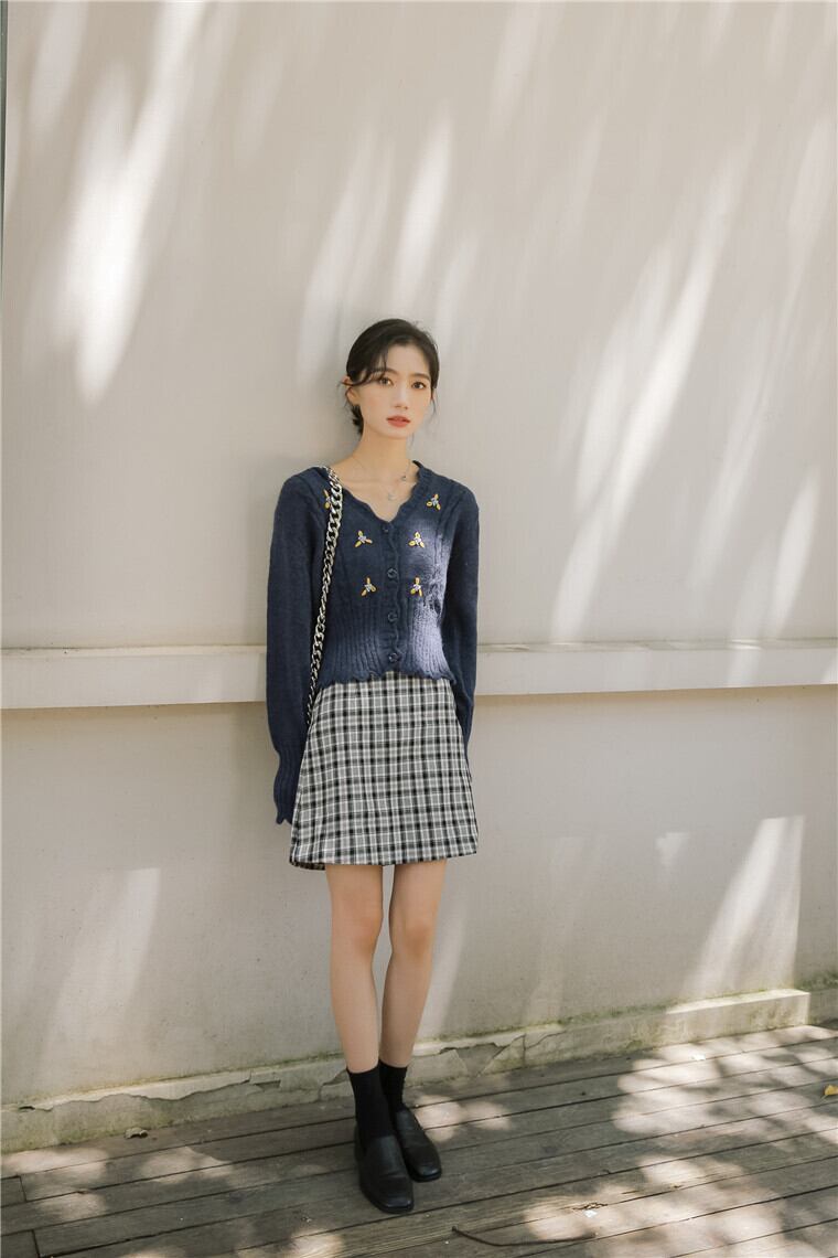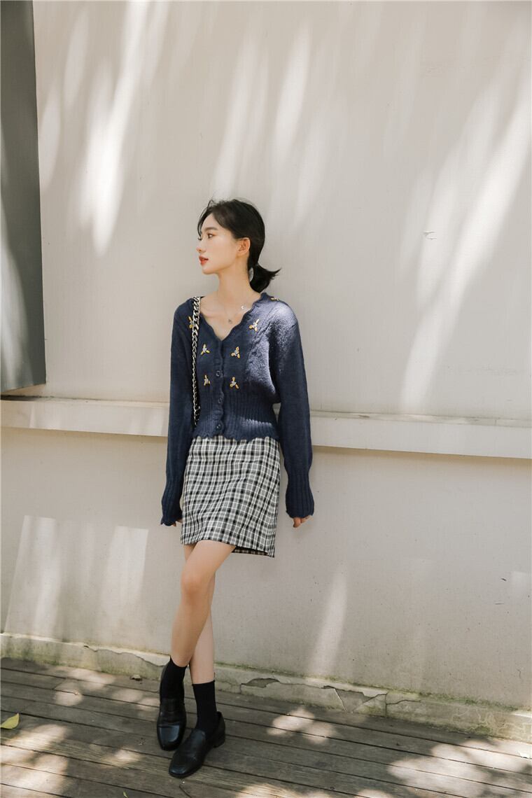 スタンダードVネックニットカーディガンレディース韓国ファッションショートセーター コート ジャケット レトロ オータム 秋物 ウィンター 冬物 GroundMODE475467800210 | pleglad Ground