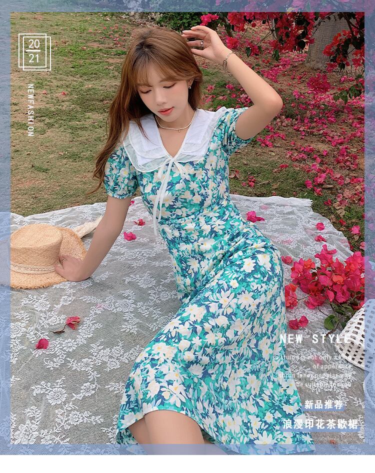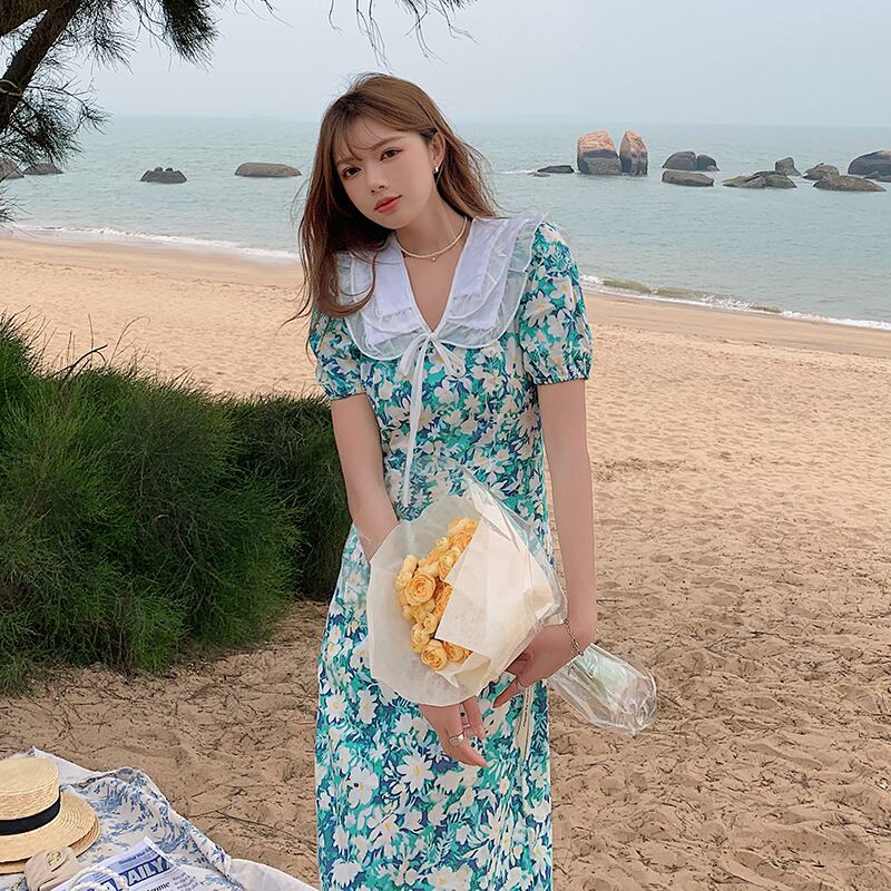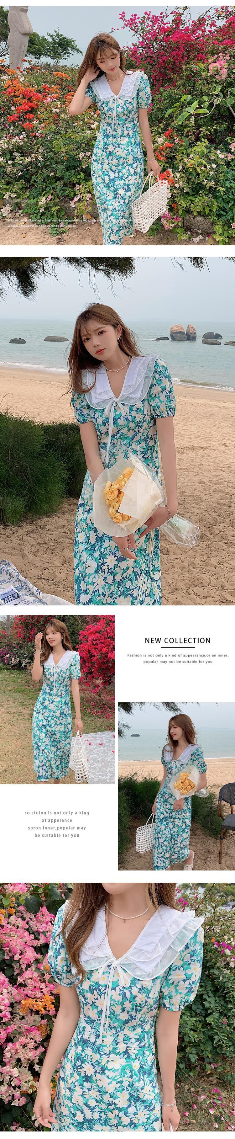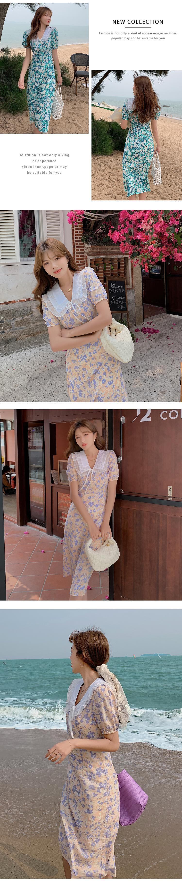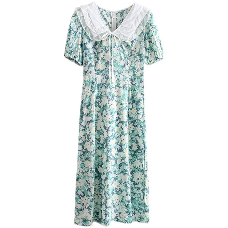 夏服韓国ファッションカラーバンドスリーブフローラルワンピース 大人ガーリー スウィート キュート カジュアル 夏物 花柄 GroundMODE496587475851 | pleglad Ground