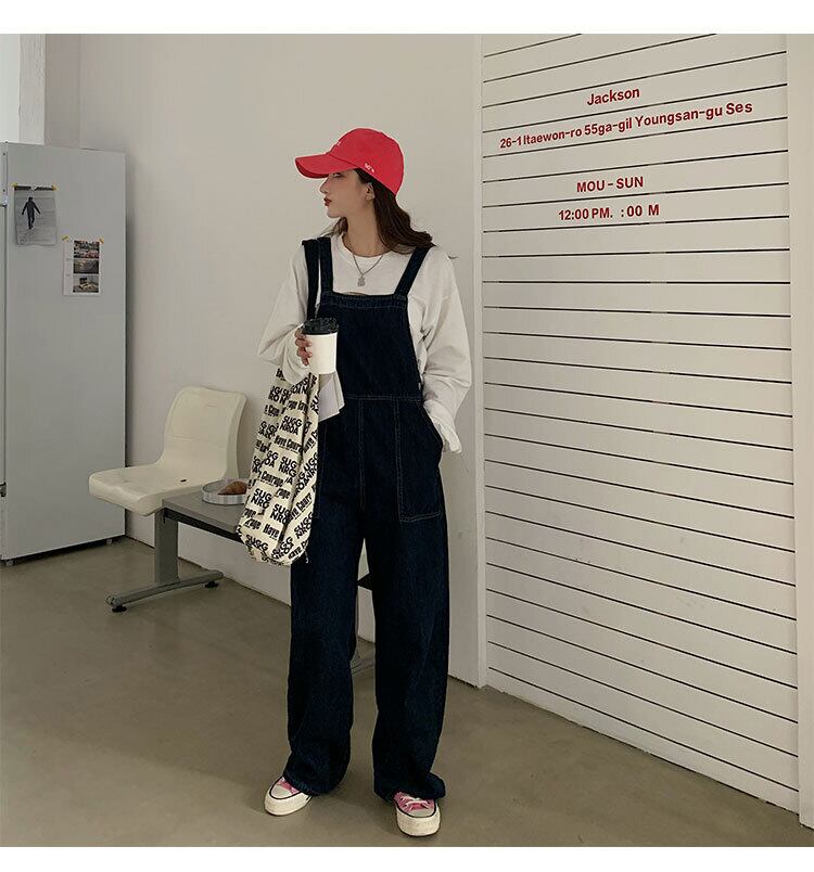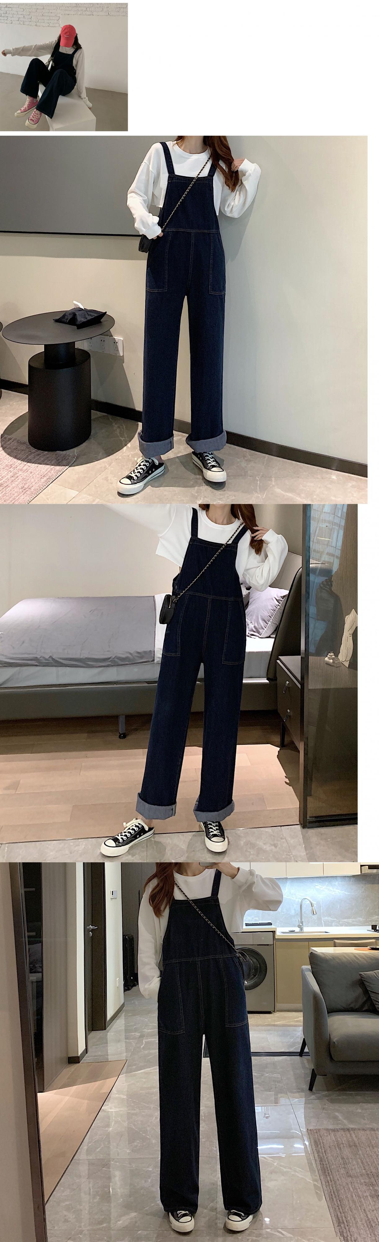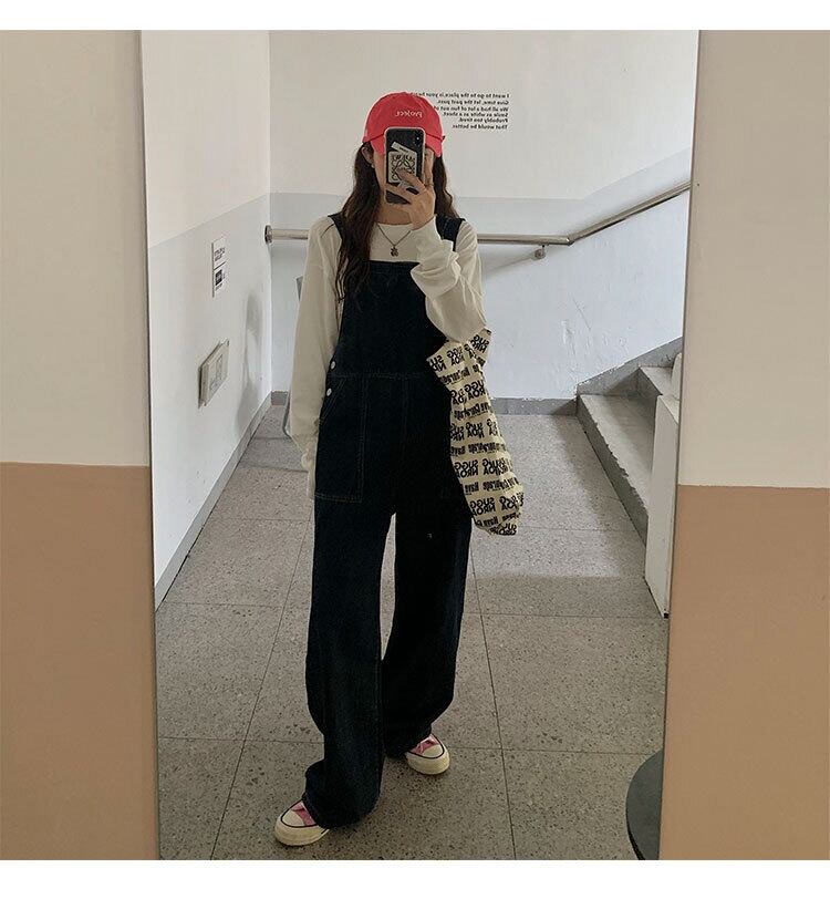 色:紺色のオーバーオールで示されているように,ホワイトレギュラー長袖トップス