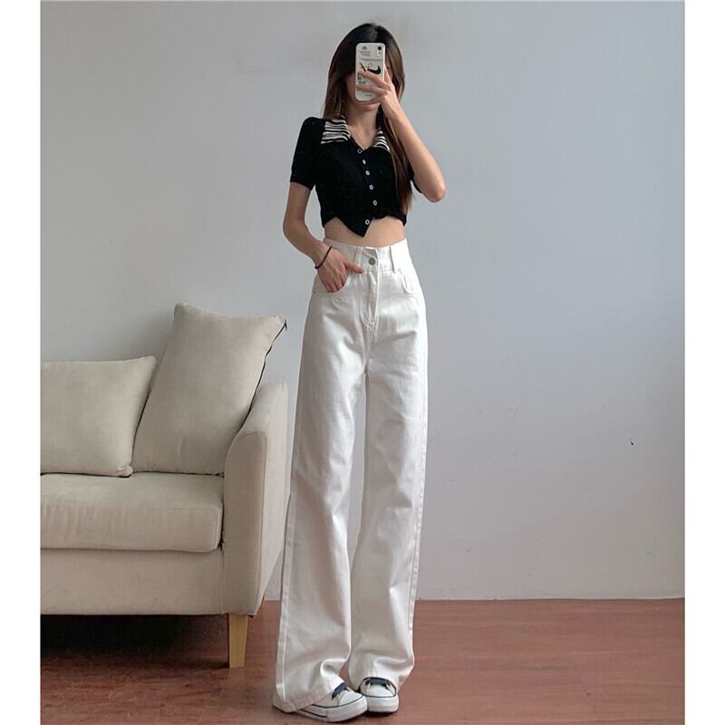 ホワイトハイウェストウェストジーンズ スプリング秋物韓国ファッションルーズスリムパンツ 春物 オータム スタイル ウエスト GroundMODE452553896910 | pleglad Ground