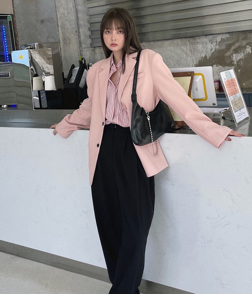 色:ピンクのスーツジャケットスポット,黒のスーツパンツスポット
