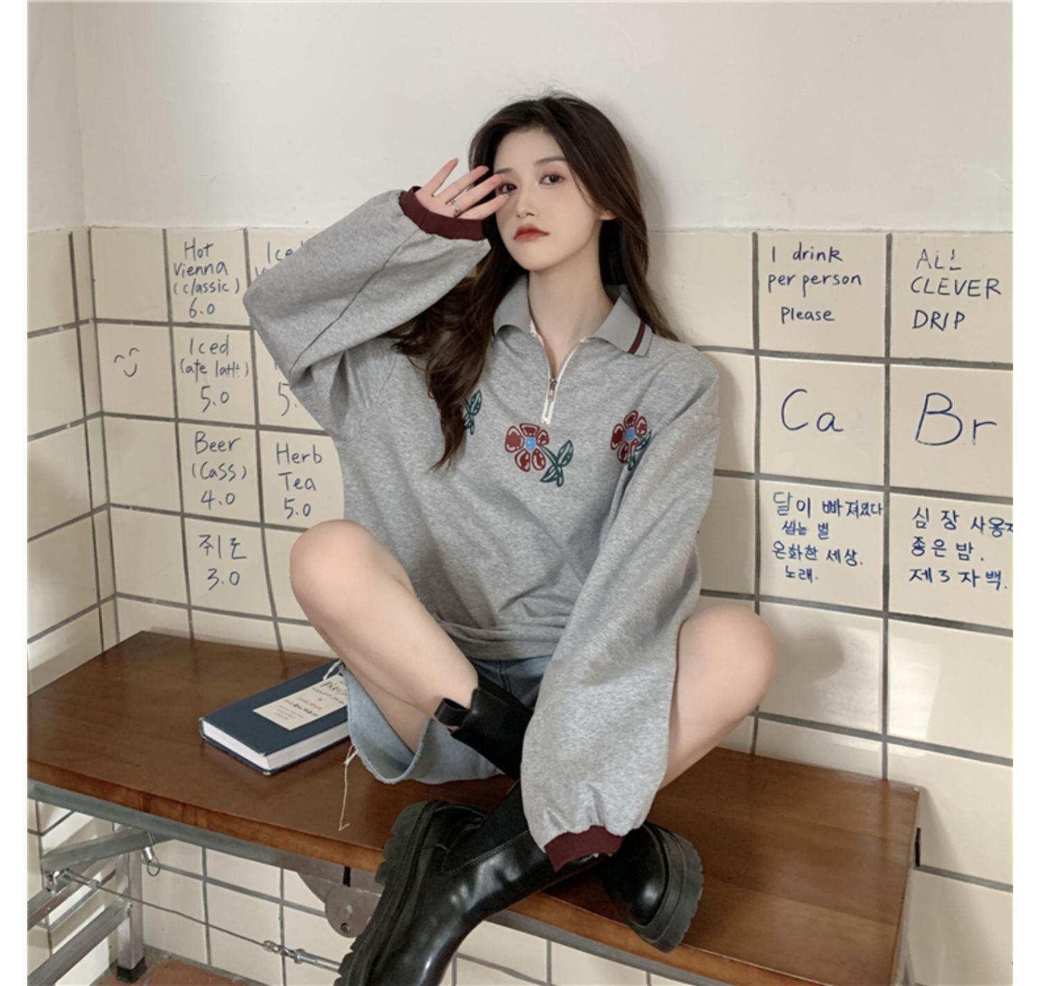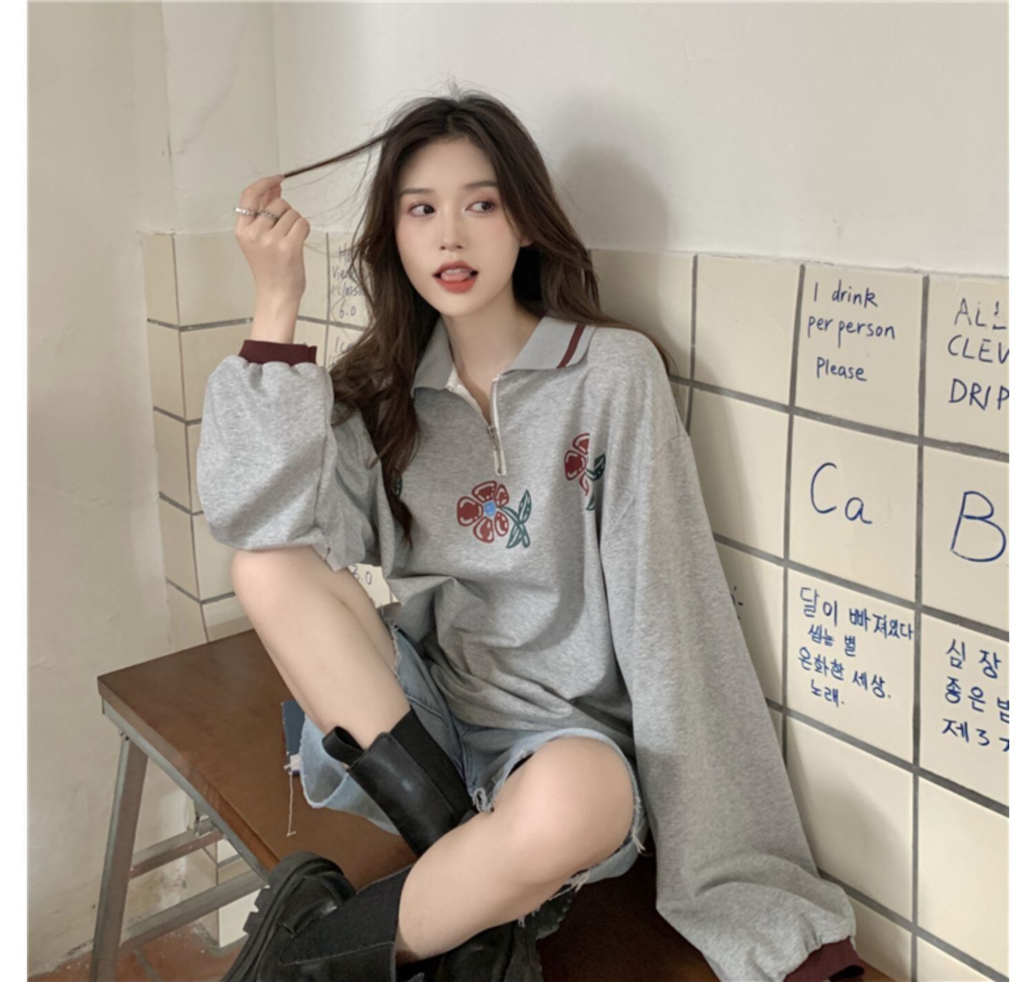 スプリング秋物カラープリントFlowerデザイン プルオーバー セーター レディースジッパートップス ロング 大人ガーリー スウィート キュート カジュアル 春物 オータム フラワーデザイン 長袖 GroundMODE44748279474 | pleglad Ground