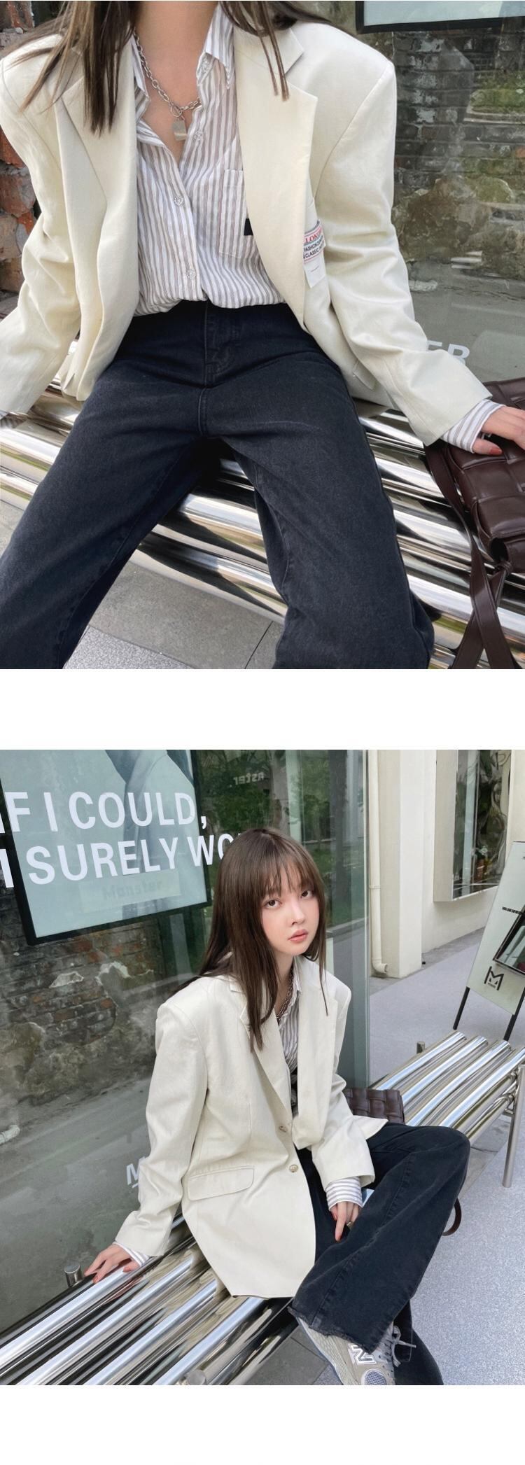 色:オフホワイトのスーツスポット,ブラックジーンズスポット