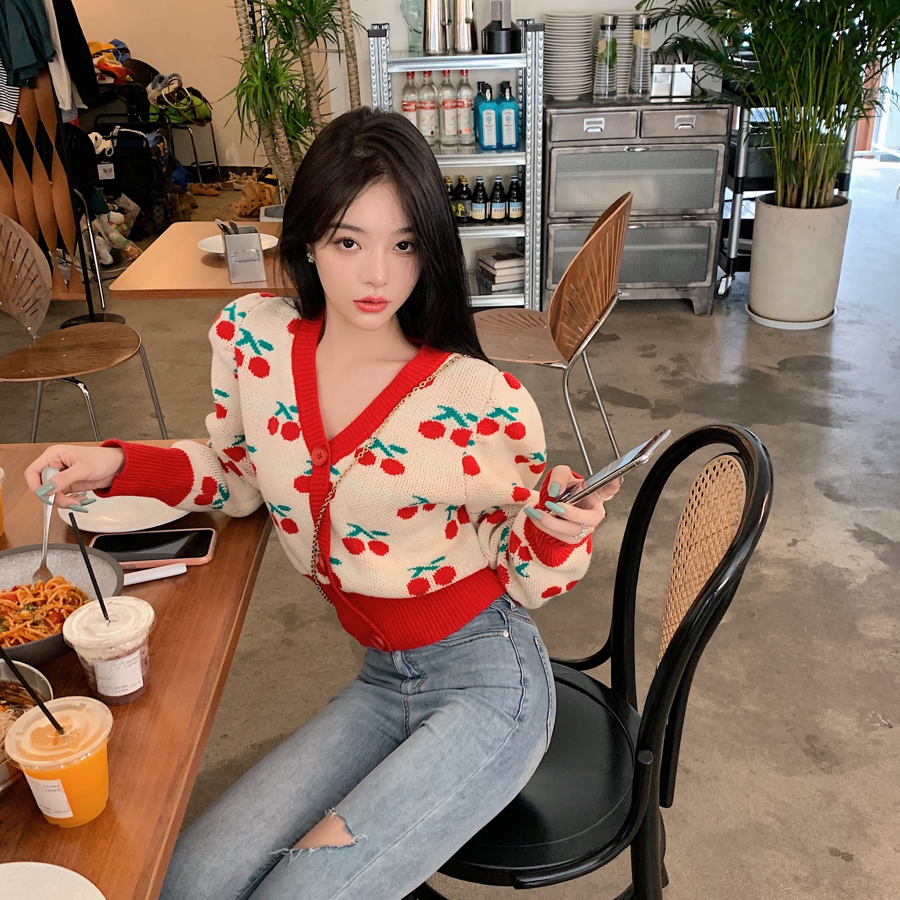 スタンダードVネックセーター 秋物スタイル韓国ファッションシャツ ロング レトロ 大人ガーリー スウィート キュート カジュアル オータム 長袖 GroundMODE445626043639 | pleglad Ground