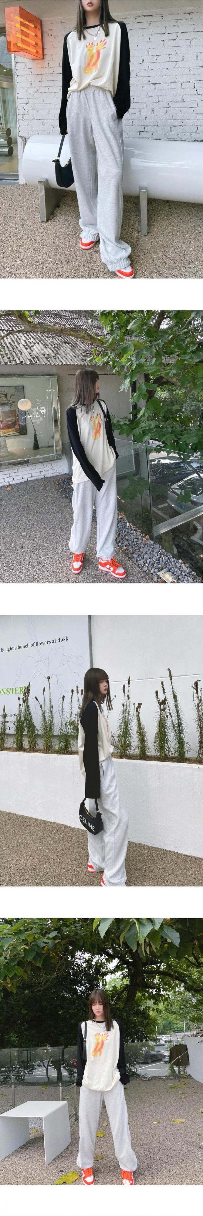 色:黒のTシャツスポット,ワッフルライトグレーパンツ
