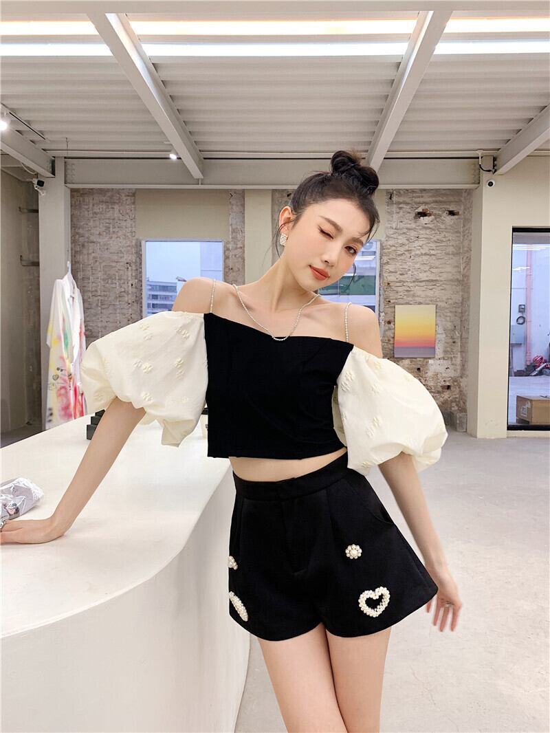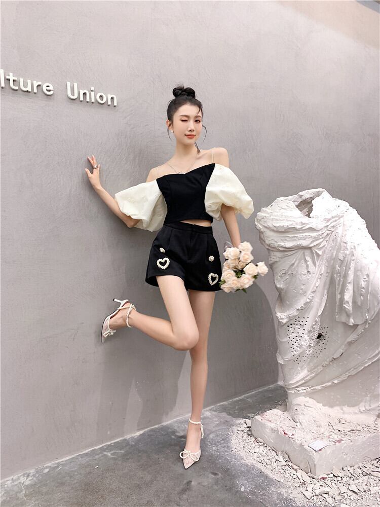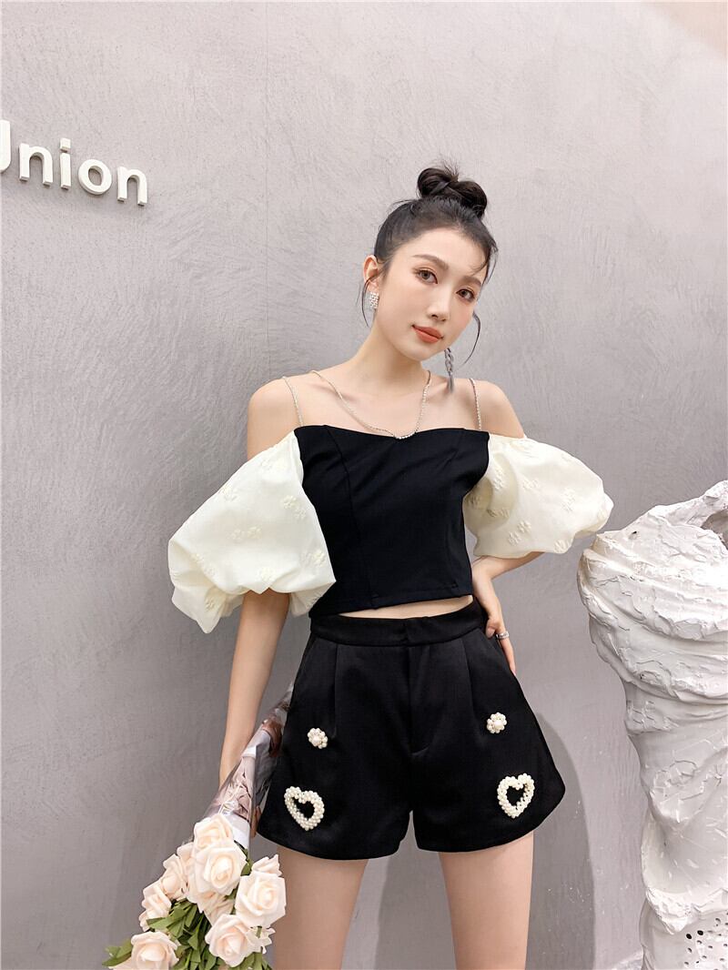 パールハートスプリング夏服スタンダードハイウェストウェスト薄手Aラインショーツ レディース レトロ 大人ガーリー スウィート キュート カジュアル 春物 夏物 真珠 ウエスト GroundMODE247533922747 | pleglad Ground