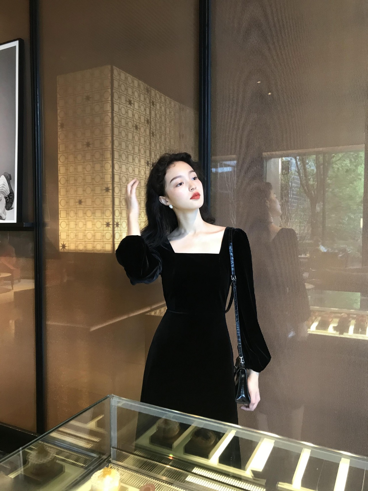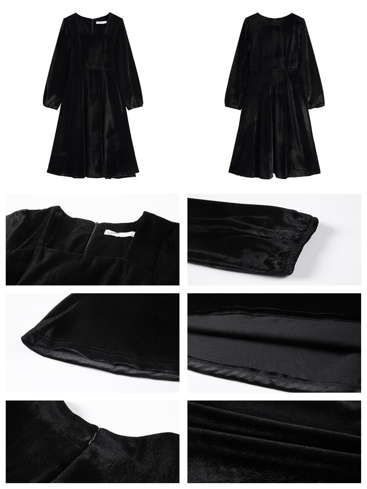 スタンダード厚みワンピース秋物カラーウェストスタイルブラックスプリング レトロ 春物 オータム スクウェア ウエスト ミドル丈 GroundMODE477658270584 | pleglad Ground