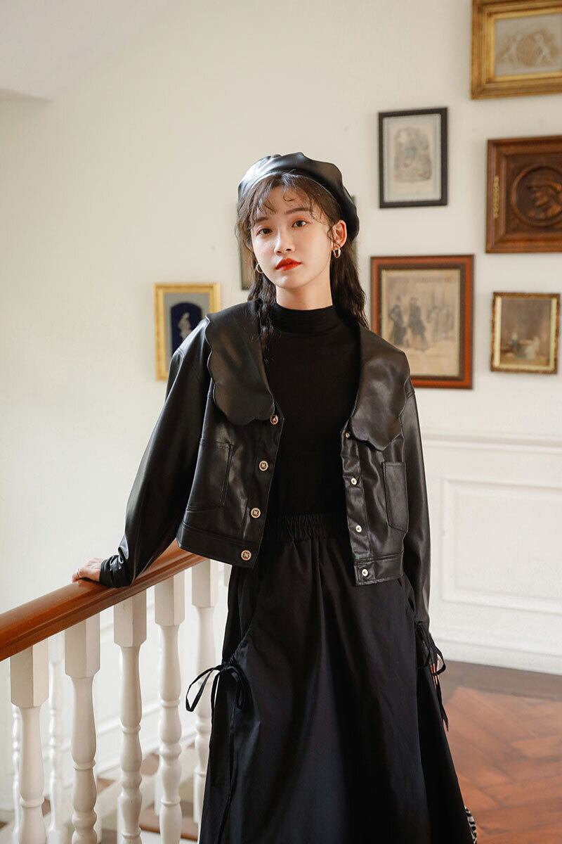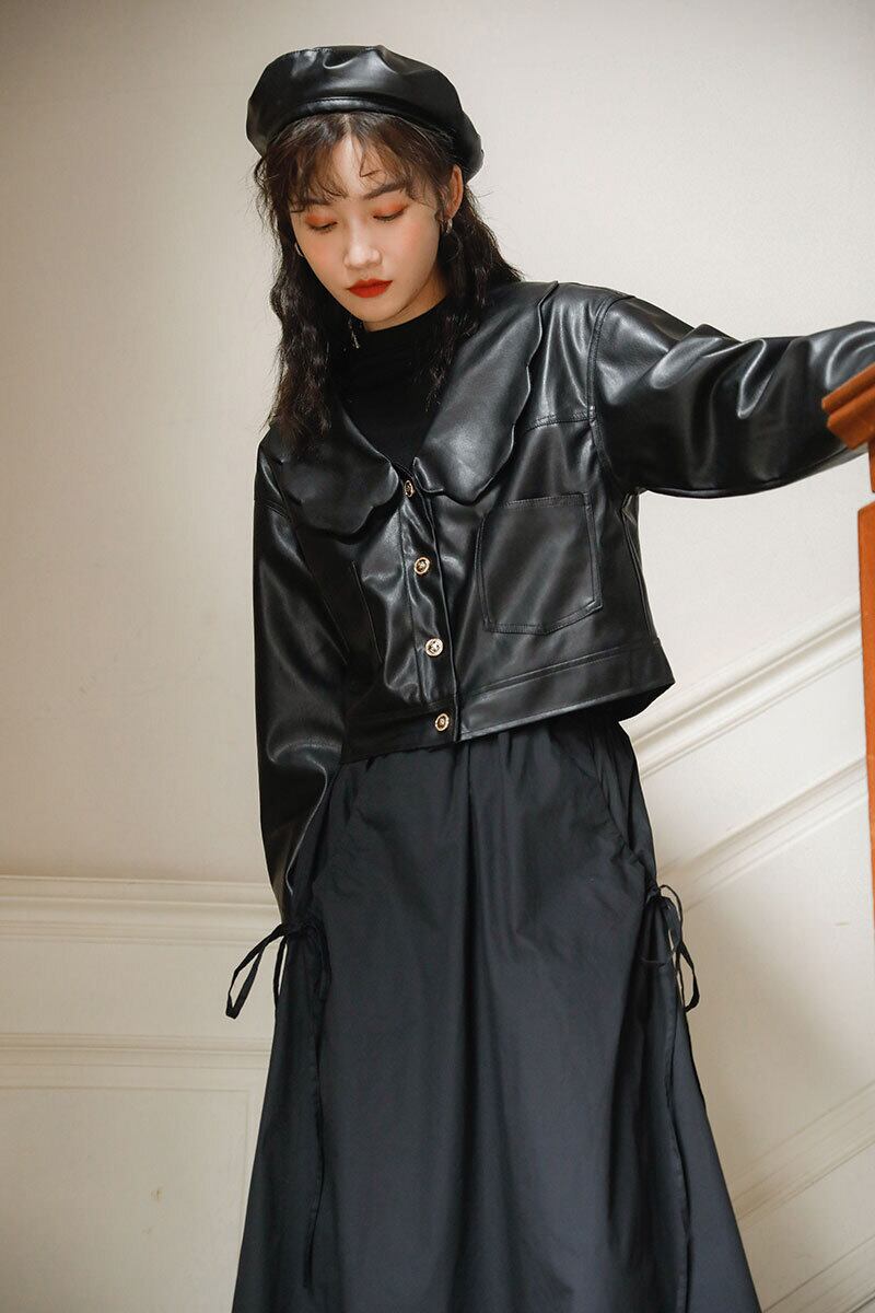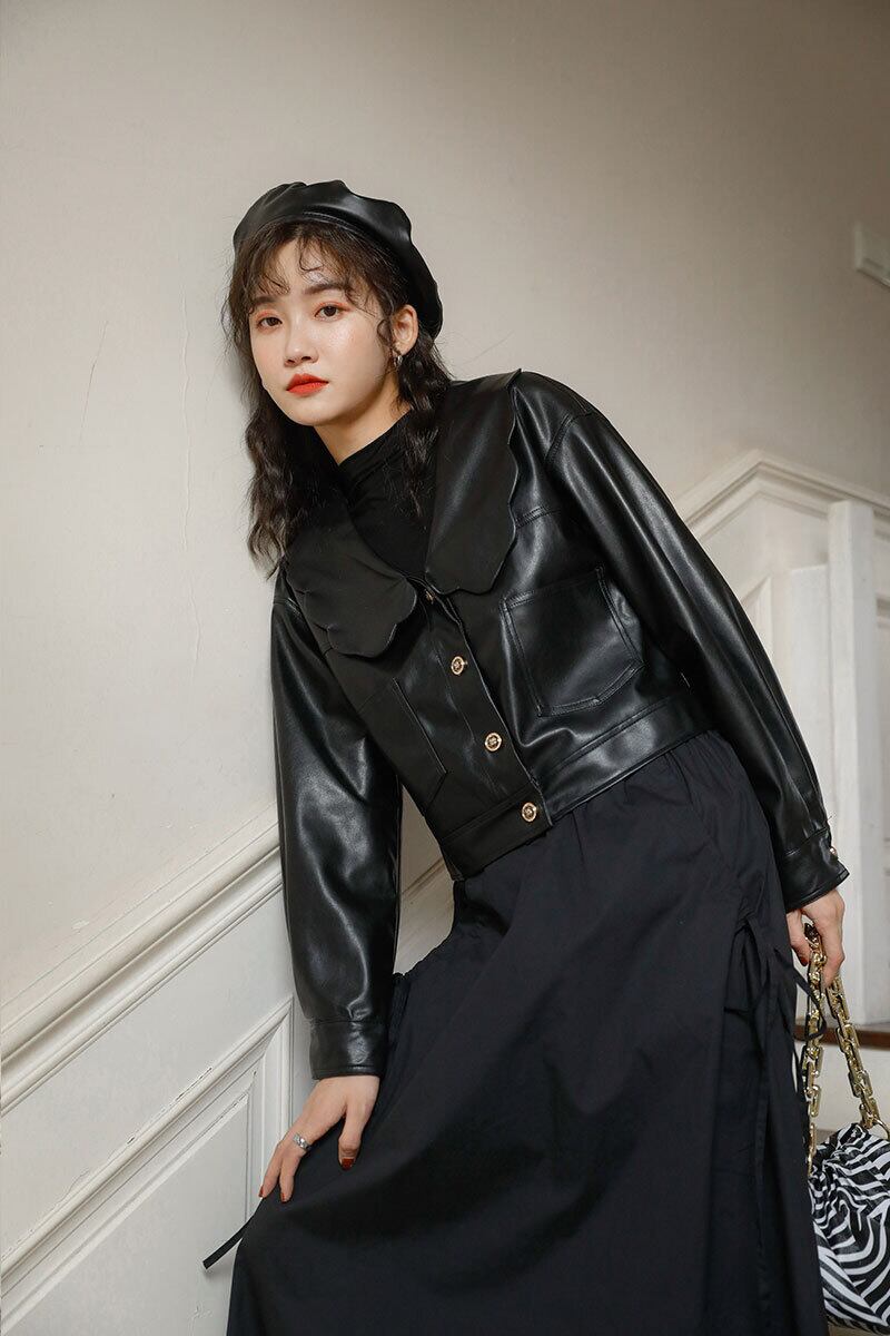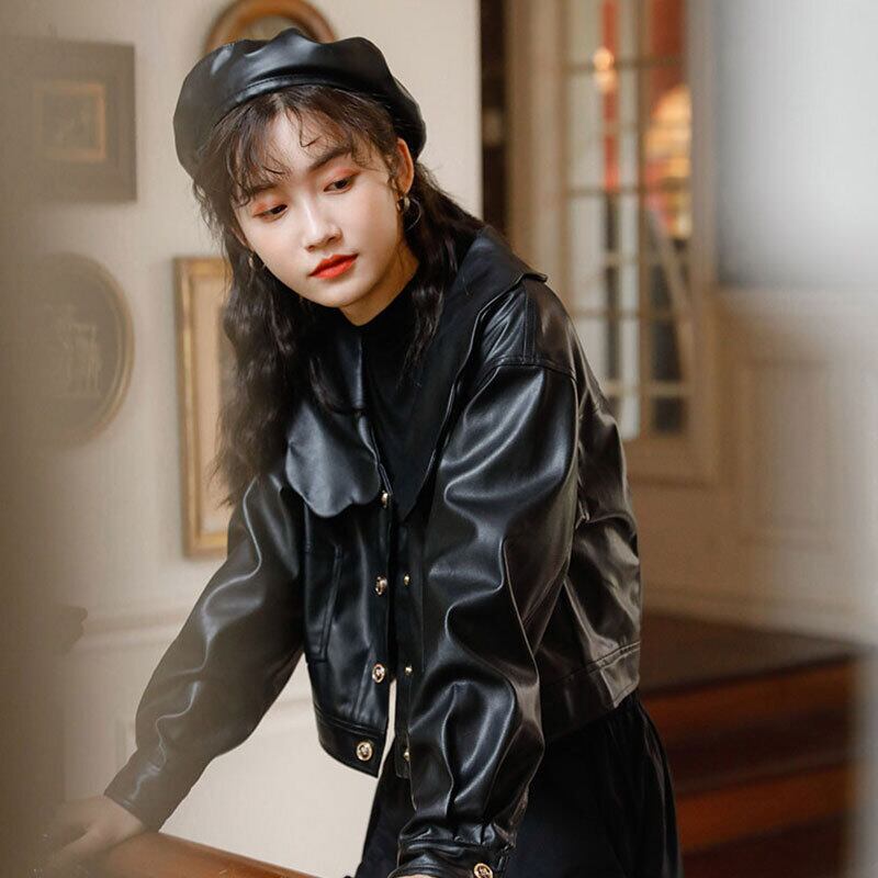 ショートレザージャケット レディース秋物ウィンター韓国ファッションルーズ薄手ブラック オータム 冬物 スタイル GroundMODE264607540572