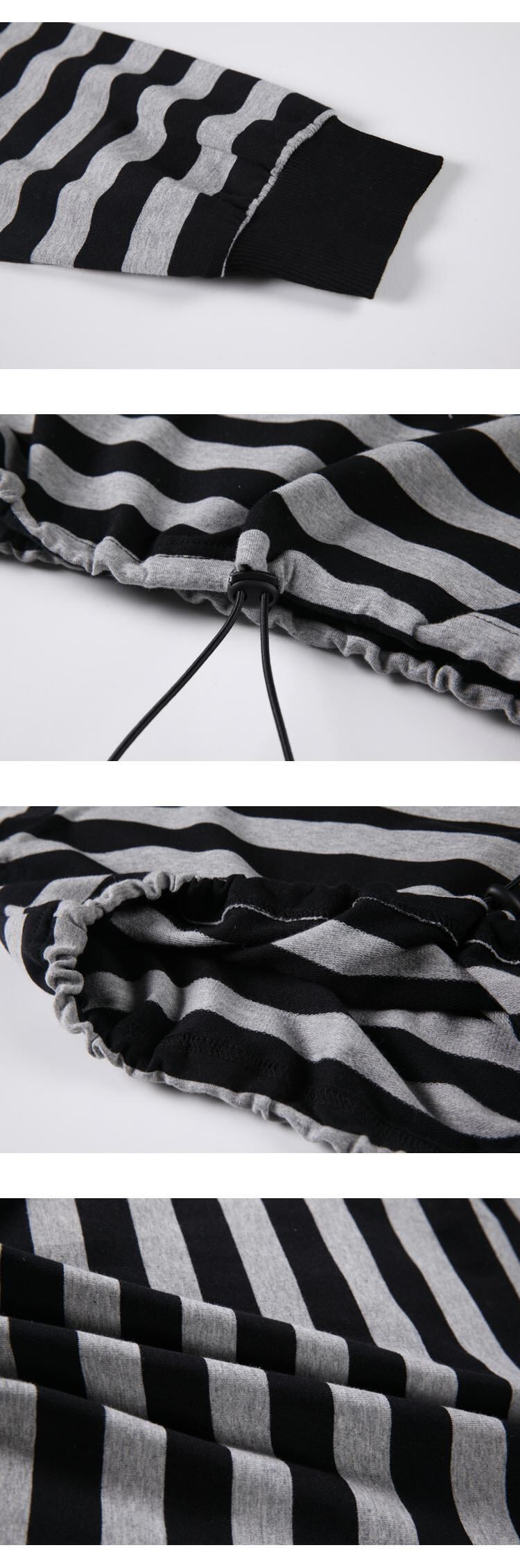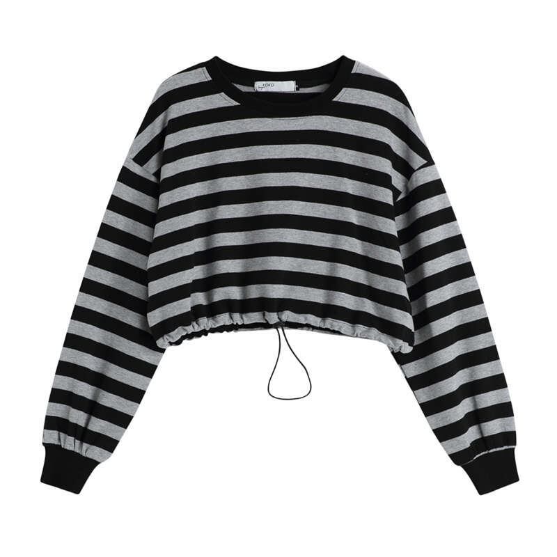 ギャザーストライプTシャツスプリング秋物ショートハイウェストトップス ロング ストリート 春物 オータム 長袖 ウエスト GroundMODE472309600653 | pleglad Ground