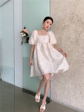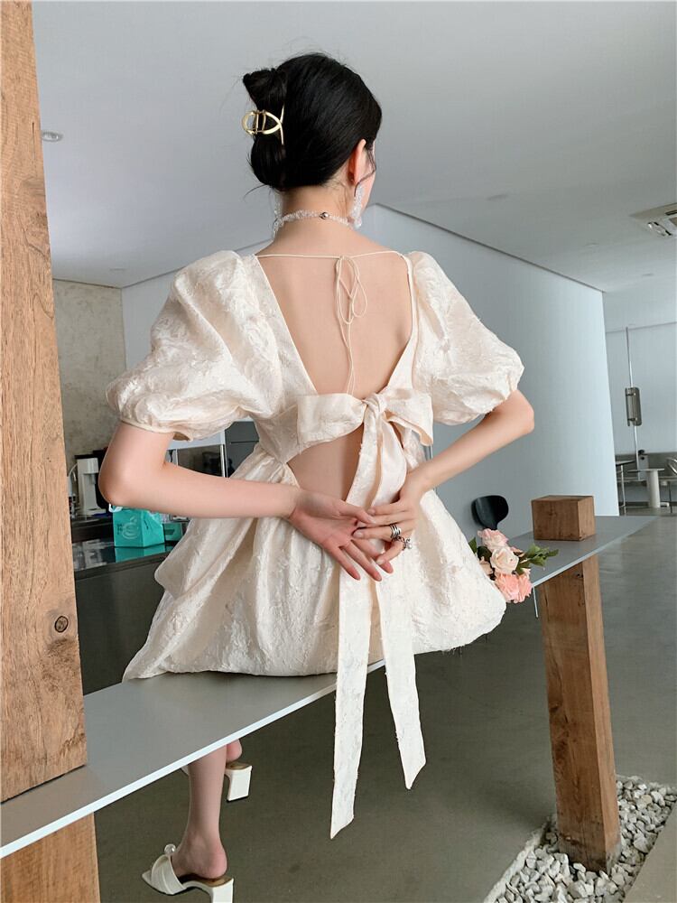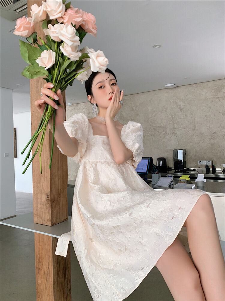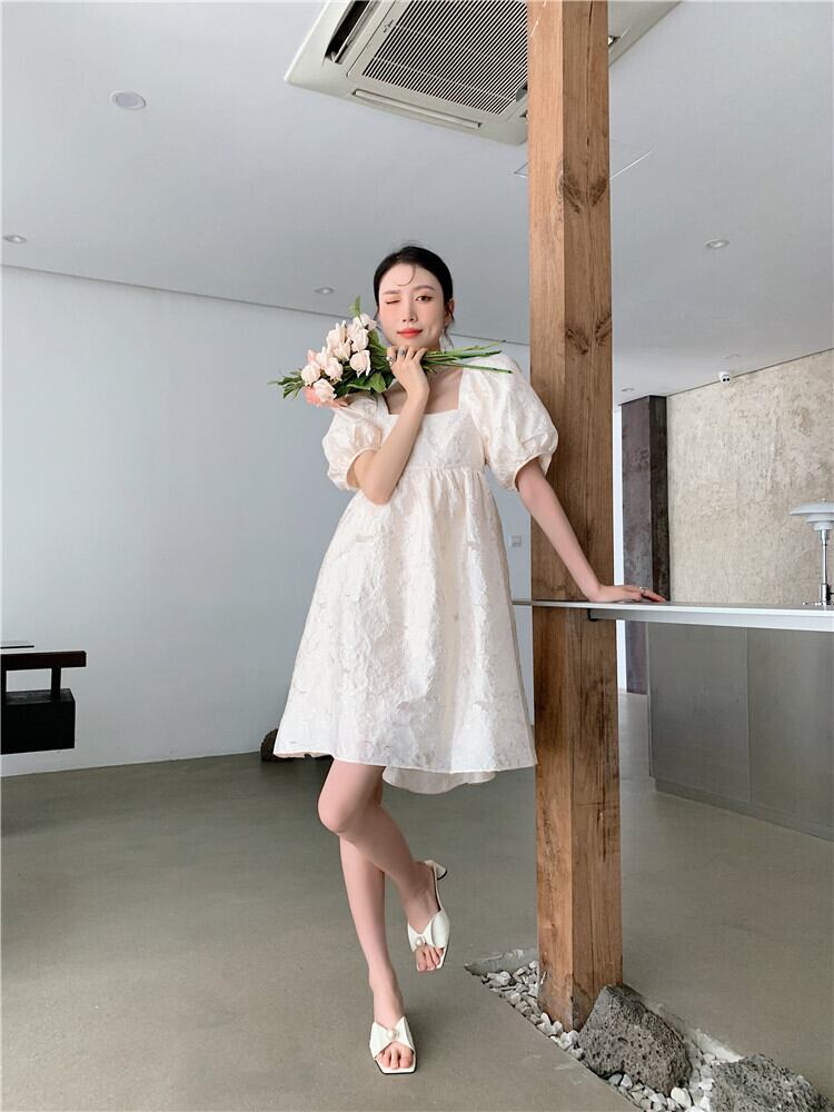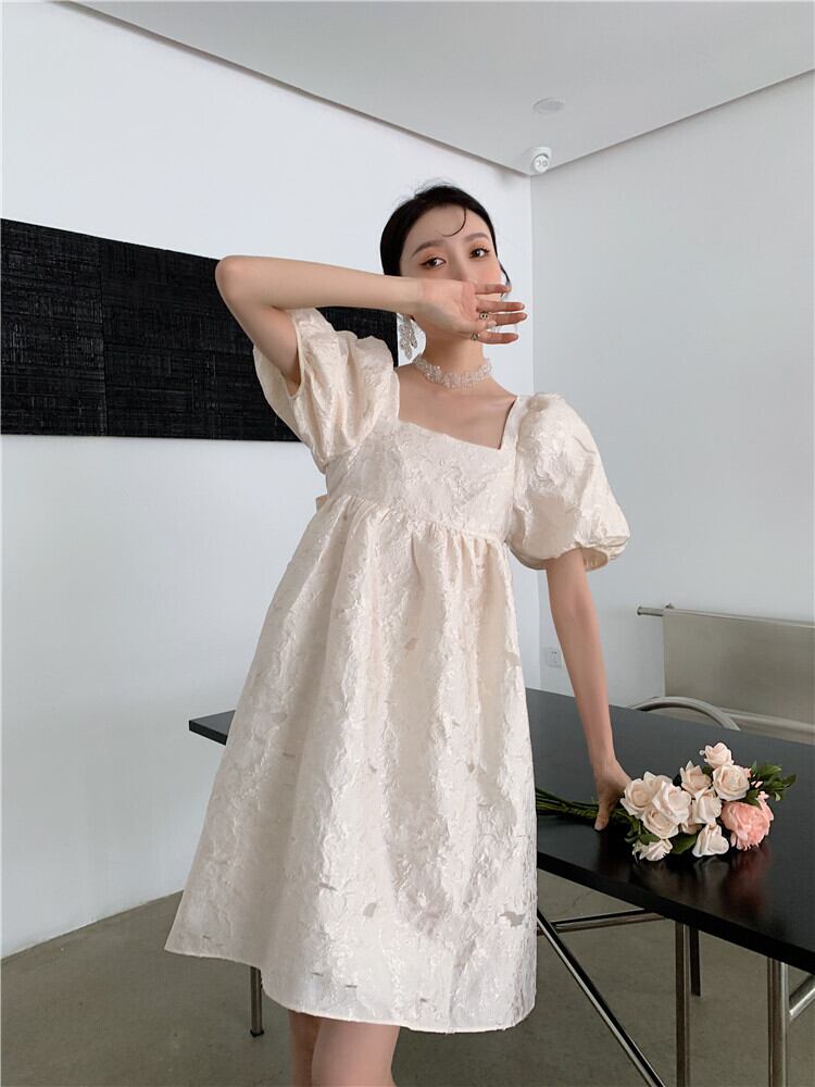 スタンダードバックワンピースレディース夏服ウェストロングスカート レトロ 大人ガーリー スウィート キュート カジュアル 夏物 パフスリーブ ウエスト GroundMODE272268890176 | pleglad Ground