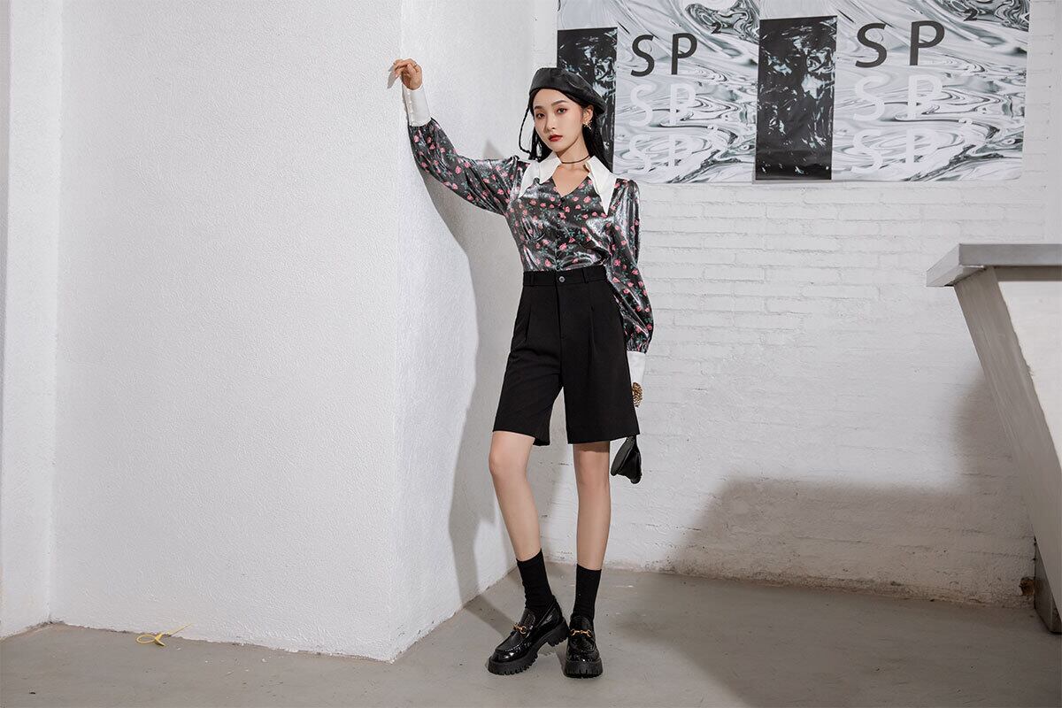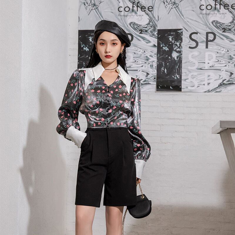 スタンダードフローラルシャツ レディーススプリング秋物ルーズブラウス ロング レトロ 春物 オータム 花柄 ステッチ 長袖 GroundMODE253233836814 | pleglad Ground