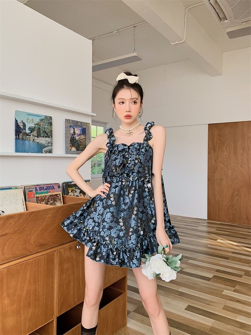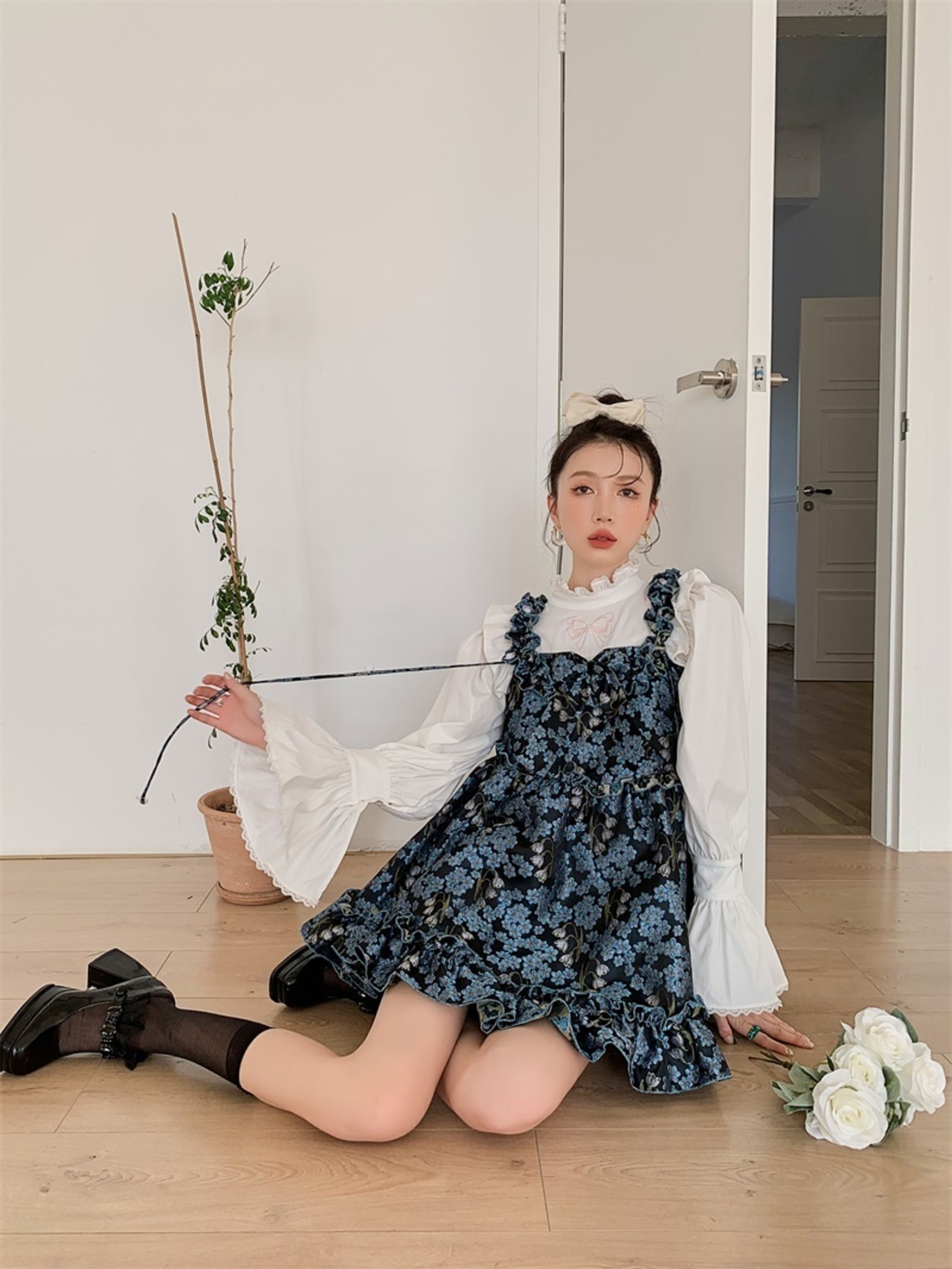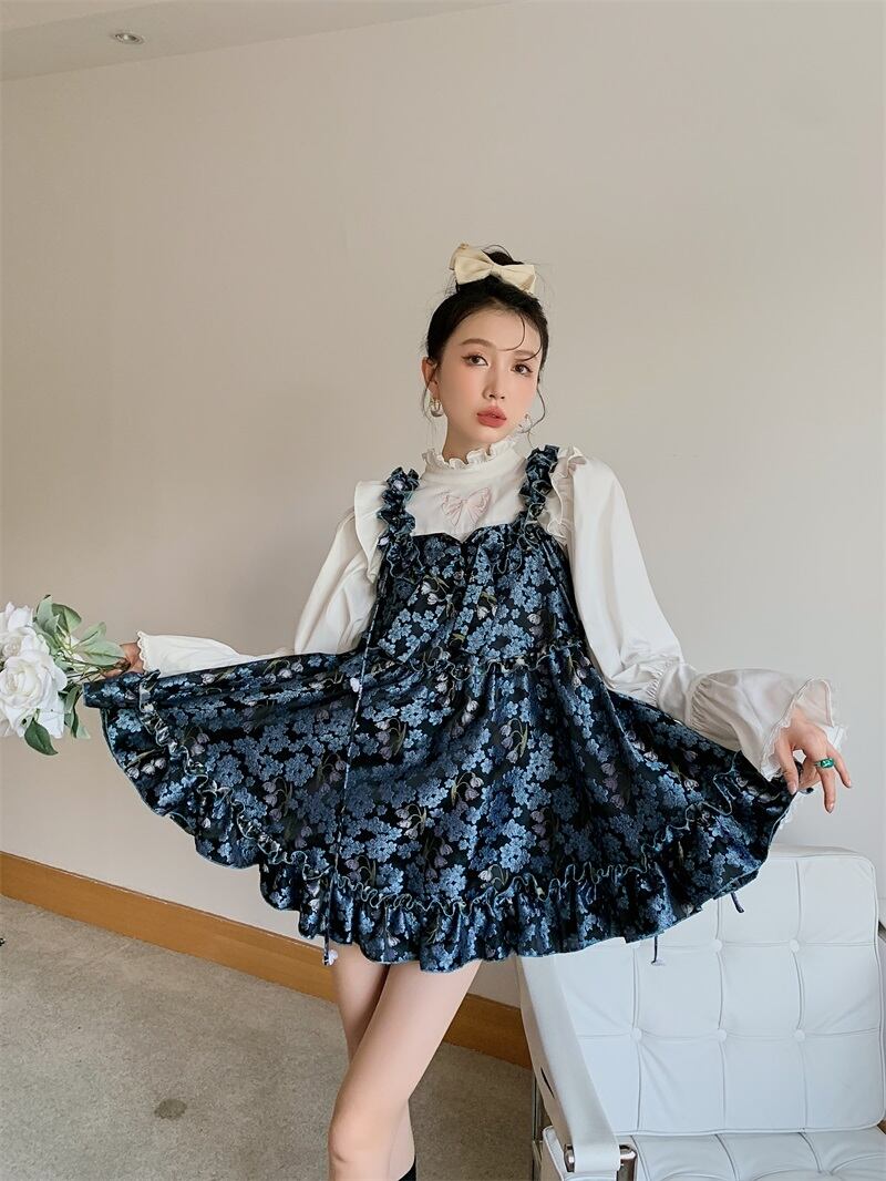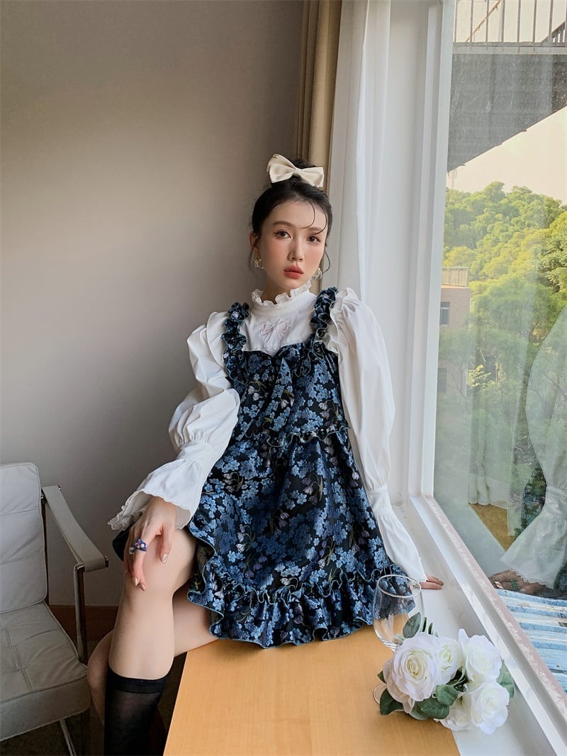 ブラックワンピースバンドFlowerデザイン ジャカードシャツ レッド リボン 刺繍 大人ガーリー スウィート キュート カジュアル フラワーデザイン GroundMODE29898673879 | pleglad Ground